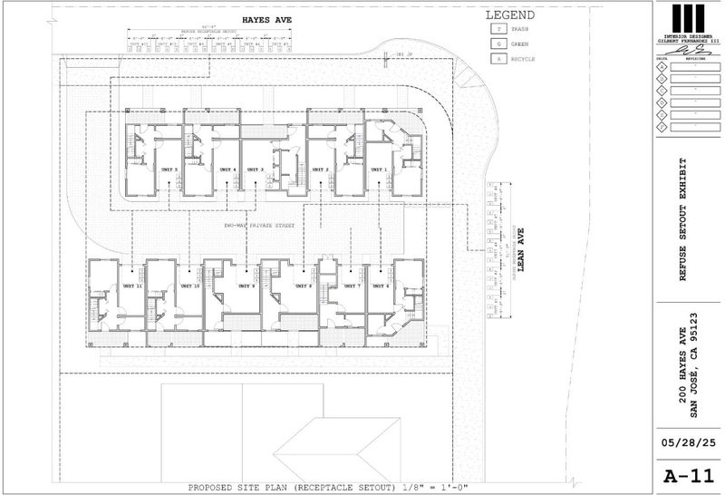 Located in a convenient South San Jose neighborhood with access to local schools and nearby shopping and transportation, 200 Hayes Ave offers a well-positioned residential development opportunity. The project proposes 11 townhome units across two three-story buildings (5 units in one building and 6 units in the other) arranged around a private internal drive aisle with individual garage access. The architectural and site plans have been prepared, and the project is ready for planning hearing, presenting a near-term development opportunity in a high-demand housing market.