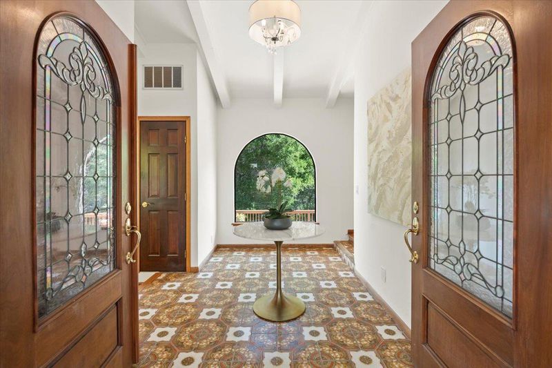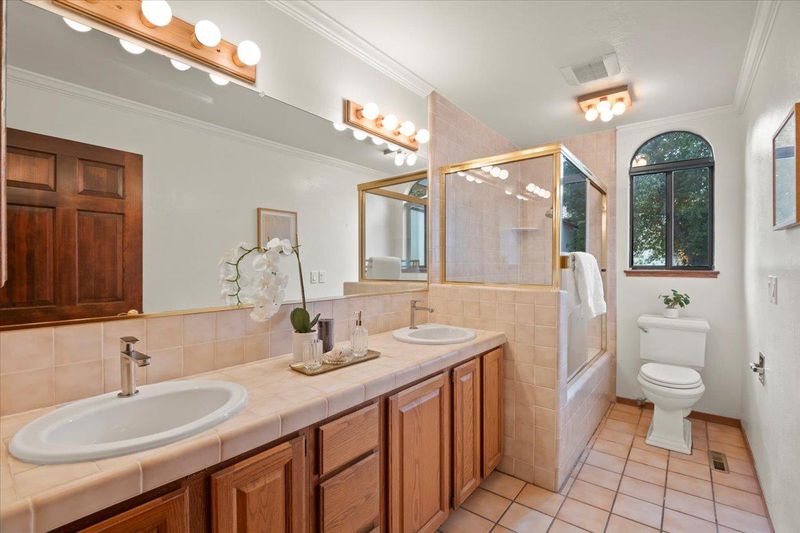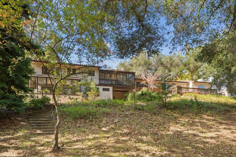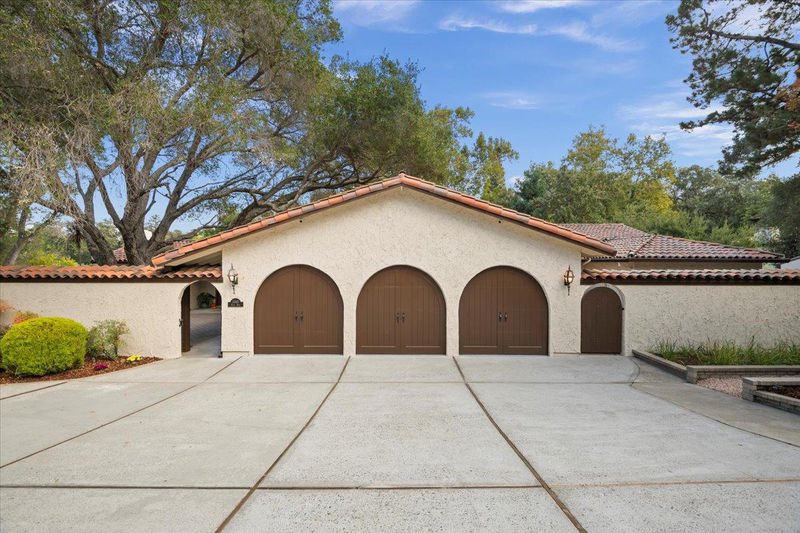 Gated and private, this elegant Spanish inspired home features tile roof, arch windows, stucco arches. Serene, and private courtyard, with water fountain, extensive stone pavers, and a grand oak tree leads to a beveled glass double door entry to a spacious, bright and charming home. Spacious family room with vaulted ceiling, fireplace, and wet bar with French doors leading to a sunroom with stunning views. Large step down living room with arched windows. Spacious primary suite with attached sunroom/cozy sitting area to capture the stunning views, dual vanities, two walk in closets, and a sunken tub. Enjoy outdoors living, surrounded by mature trees, with stunning views. The expansive multi level decks provide the ultimate setting for entertaining. Gleaming new refinished hardwood floors in most of the home. New plush carpet. Dual HVAC systems (2019). Water heater (2020). Remodeled laundry room with new cabinetry and stone top. New recess lighting throughout. Spacious 3 car garage, with new epoxy floor, and carriage house design doors. Ample outdoor storage sheds. Fresh interior and exterior paint. Saratoga schools