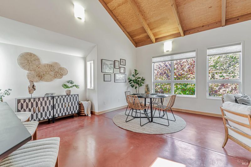 The Florence Lofts, a modern oasis in the heart of Sebastopol, rarely enter the market for sale. This 3-story loft townhome offers a retreat from city life, yet it sits in the heart of the City of Sebastopol. Convenient, flexible living spaces make this the perfect live/work space or multi-generational home. The main level is a studio live/work space equipped with a full kitchen, bath, and living area. It includes two entries; one from the courtyard and the other that opens to a patio area facing Florence Avenue. This space would be perfect for your home office or a separate living area. The second level offers a bright, spacious, and open living area with high, vaulted open beam ceilings, a half bath, and laundry area. The kitchen features Paperstone countertops, ample storage, and breakfast bar, as well as access to the balcony overlooking the courtyard. The third level loft area includes a bedroom with vaulted ceiling, built-in cabinetry, and full bath. Featuring solar, radiant heated concrete flooring, and tankless water heater, as well as two assigned parking spaces, one of which includes a Level 2 EV charger, this home is conveniently located near restaurants, entertainment, shopping, the Joe Rodota Trail, and all the Wine Country has to offer.