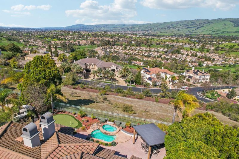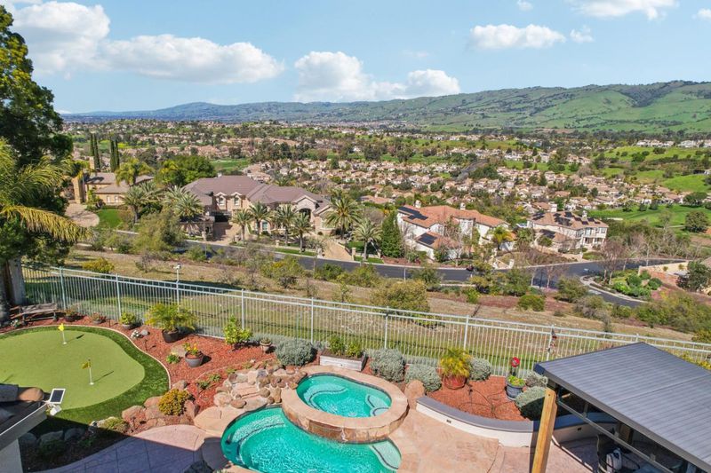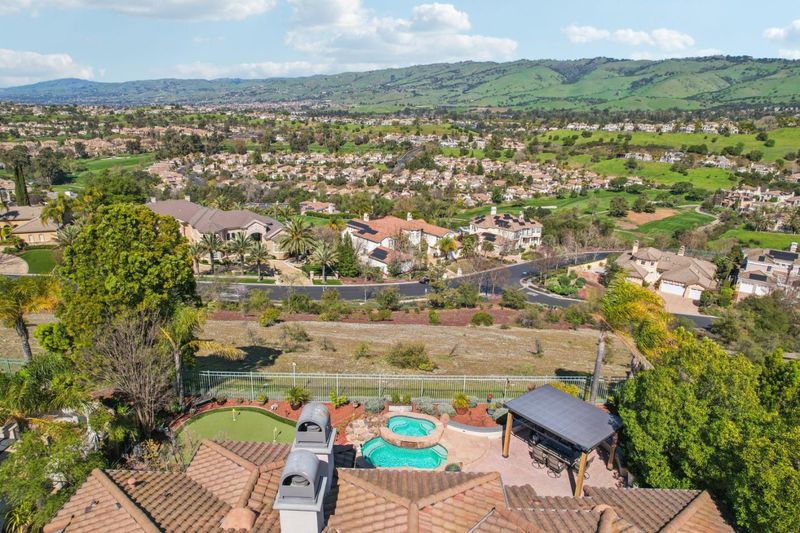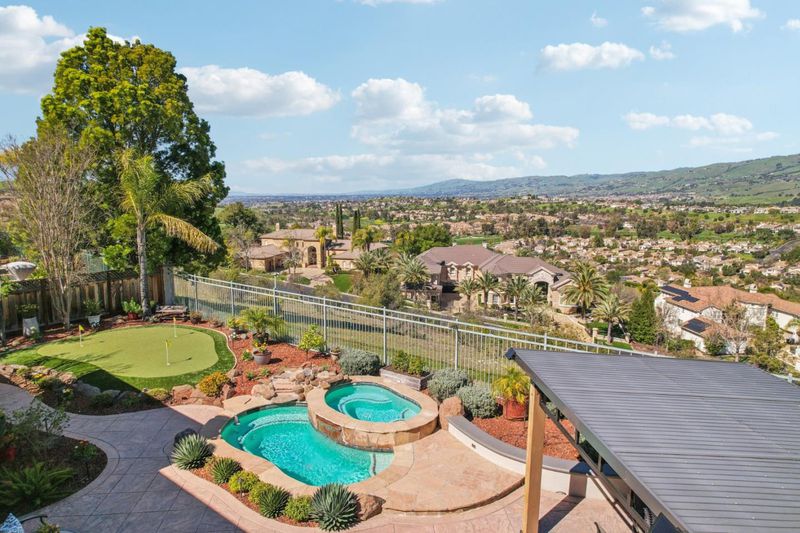 A rare opportunity to own one of the most spectacular view properties the prestigious Silver Creek Valley Country Club has to offer. This stunning single-level estate is perched in the gated Augusta Collection on a generous 9,535 square foot lot, capturing sweeping 180-degree panoramic vistas that rank among the finest in the club. The property features 4 bedrooms + office (4th bedroom configured as builder option den) & 3.5 bathrooms. Interior highlights include wood flooring, high ceilings, crown molding, plantation shutters, skylights, & custom built-ins.The remodeled kitchen includes a center island, s/s appliances, & ample cabinetry, The primary suite includes a fireplace, backyard access, walk-in closets, & an updated bath w/ quartz countertops, dual vanities, & a jetted tub. A dedicated office includes custom built-in cabinetry & desk. The resort-style backyard is designed to fully embrace what makes this property exceptional - Its commanding vantage point. Enjoy sweeping valley & hillside views from the in-ground spa that flows into the shallow pool. Enjoy the lifestyle & amenities of SCVCC w/ award-winning schools, all within an exceptional single-level retreat offering panoramic views & privacy in one of Silver Creeks most sought-after settings.