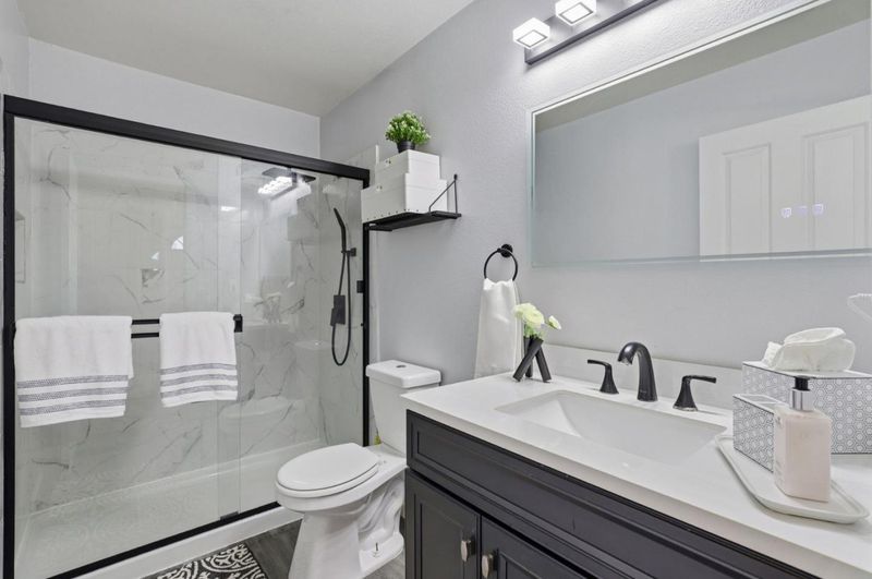 - Double Sinks, Primary - Stall Shower(s), Stall Shower, Stone, Tile, Updated Bath