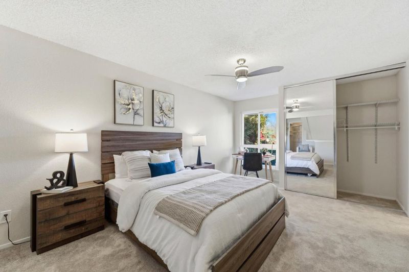 Step into this stunning 1-bedroom, 1.5-bathroom townhouse offering 1,070 Sq. Ft. of sun-filled living space with a 2-car garage and two private patios, located in the highly sought-after Cupertino school district in the heart of Silicon Valley. Freshly painted with new carpet, this home features a formal entry, vaulted ceilings, abundant natural light, and an open floor plan that blends comfort and style. The gourmet kitchen offers granite countertops, oven/range, New dishwasher, refrigerator, garbage disposal, and new microwave. Additional highlights include forced air heating and A/C, dual pane windows, inside laundry, and ample storage. Enjoy easy access to major freeways, expressways, and leading tech employers including Apple, Nvidia, and Intel. Close to Levi's Stadium, Kaiser Permanente, Westfield Valley Fair, and Santana Row. Walking distance to a Korean health spa and convenient bus lines to San Jose, Cupertino, and Levis Stadium. Enjoy beautiful sunrises and sunsets, plus a charming patio with a lemon tree and vibrant bougainvillea. A must-see!
