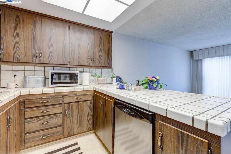 - Dishwasher, Oven, Gas Water Heater, 220 Volt Outlet, Tile Counters, Oven Built-in