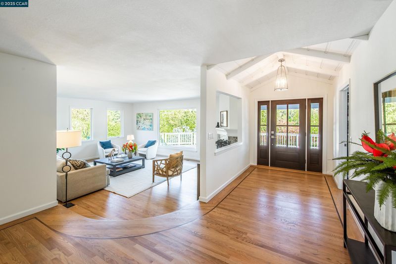 Perched on a scenic knoll in Lafayette’s coveted Silver Dell neighborhood, this light-filled ranch-style home offers sweeping views, privacy, and effortless indoor-outdoor living. The open floor plan features an expansive living and dining room with Mt. Diablo and hillside vistas, a chef’s kitchen with stainless-steel appliances, bar seating, and a casual dinette that opens to the family room with skylights, soaring ceilings, and a fireplace. A bright bonus room wrapped in glass offers flexibility for a playroom, game room, or quiet retreat. A private wing includes a bedroom and full bath with pool access plus a nearby laundry area. The primary suite is a true sanctuary with a sitting area and fireplace, spa-inspired bath, and walk-in closet. Outdoors, enjoy multiple patios, a pool and spa, level lawns, fruit trees, raised garden beds, and a charming chicken coop. Minutes to downtown Lafayette and Walnut Creek, hiking trails, commute routes, BART, and top-rated schools.