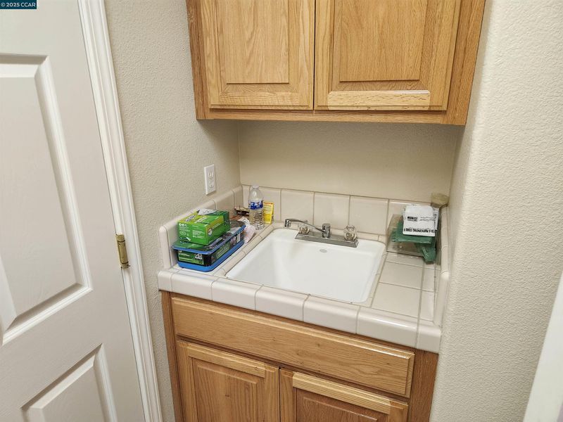 - 220 Volt Outlet, Dryer, Gas Dryer Hookup, Laundry Room, Washer, In Unit, Cabinets, Inside Room, Sink