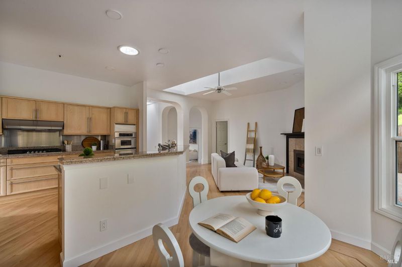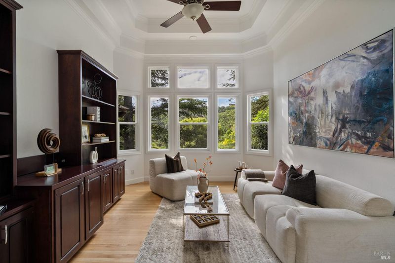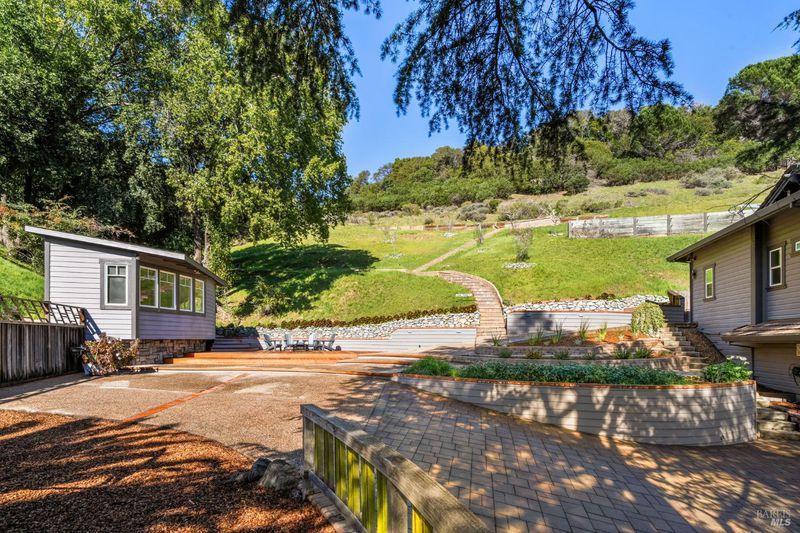 Set on nearly three private acres, 174 Main is a rare offering of scale, serenity, and sweeping Bay viewsjust minutes from Highway 101 and everyday conveniences. Framed by mature Deodar Cedars and natural landscape, the property feels secluded and serene, yet remarkably connected. Spanning approximately 3,775 square feet, the residence is defined by soaring ceilings, graceful arched entryways, and abundant natural light. Expansive windows and sliding glass doors capture lush outlooks and open seamlessly to outdoor living spaces, creating a fluid indoor-outdoor experience ideal for both entertaining and everyday living. The main level is designed for gathering and retreat. Multiple fireplaces add warmth and architectural presence throughout the living room and the combined dining and kitchen areas. A formal dining room, dedicated media room/den, and flexible spaces allow the home to adapt effortlesslywhether hosting guests, working remotely, or enjoying quiet evenings by the fire. Generous storage and thoughtful updates enhance livability without compromising style. The spacious, private primary suite includes a gas fireplace, large walk-in closet with built-in organization complements, and spa-inspired bath, featuring a soaking tub, separate water closet, and a layout designed for comfort and privacy. Outdoors, the nearly three-acre setting offers uncommon space and versatility. A separate studio/workspace with heat, electricity, and storage provides flexibility for a creative studio, fitness room, workshop, or detached office. Multiple outdoor living areasincluding a hot tubinvite year-round enjoyment in Marin's sun-favored Microclimate. A private staircase ascends to The Peek,'' a signature feature of the property: an elevated sitting area with unobstructed views across the Bay to the East Bay hills. The property is enhanced by an owned 5.1 kW solar system upgraded in 2023, supporting energy efficiency and long-term cost savings. A spacious three-car garage with EV charger plugs add convenience and future-ready functionality. Located at the end of a quiet cul-de-sac, just steps from Glenwood Elementary and trail access to China Camp State Park, as well as blocks from McNears Beach, Andy's Market, and the Loch Lomond Marina, 174 Main offers direct access to some of Marin's best kept secrets while remaining just minutes from downtown San Rafael dining, shopping, and services.