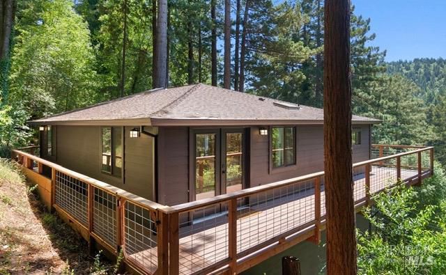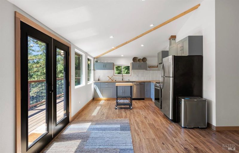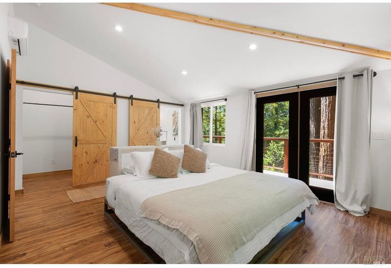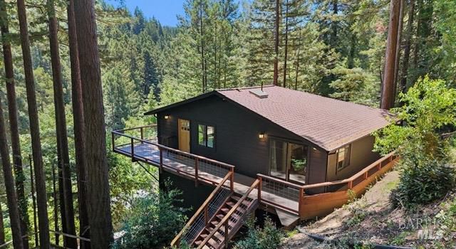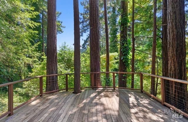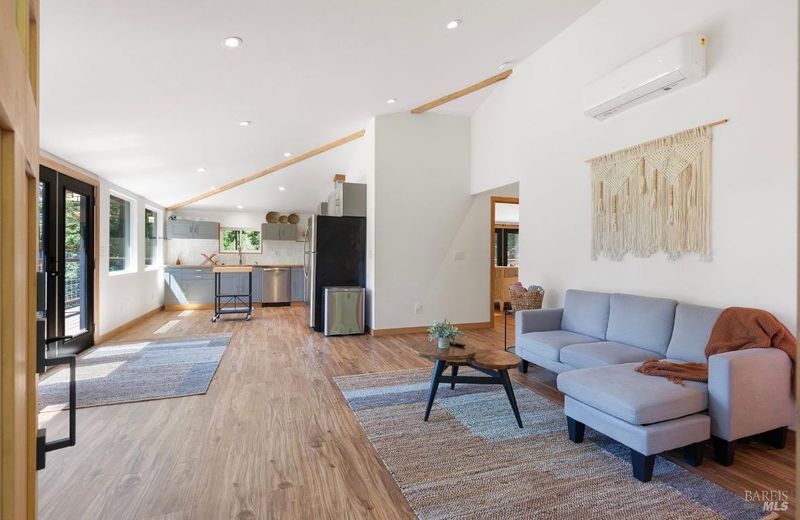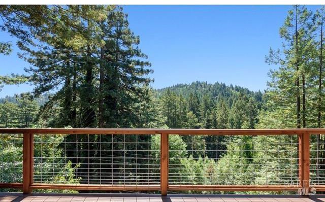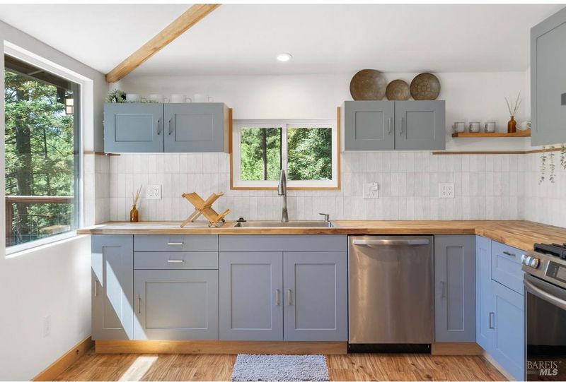 Tucked into the Guernewood Heights neighborhood along the famed Russian River corridor, this thoughtfully updated 1,770 sq ft home offers the rare combination of authentic Sonoma County character and modern, move-in-ready comfort all under a canopy of old-growth redwoods. Recently remodeled, the home has been carefully brought into the present with quality upgrades throughout: warm butcher block countertops, ceramic tile baths, cathedral ceilings, and hardwood floors that bring a fresh, elevated style to the home's timeless character. The updated kitchen is dialed in and ready for everything from weeknight dinners to weekend entertaining. Step outside and the setting takes over. The upper balcony commands sweeping, unobstructed views of ancient redwoods that rise dramatically against the sky a view that never stops giving. Below, a shaded lower patio offers a cooler, more intimate escape, perfectly suited for morning coffee, evening wine, or simply losing track of time in the quiet of the trees. The flexible lower-level space opens the door to whatever you envision a workshop, art studio, home gym, or generous storage. This is a home that holds you close but when you're ready to explore, the adventures await you: Several Russian River beaches are just minutes away, Armstrong Redwoods State Natural Reserve offers world-class hiking and horseback riding, and the acclaimed restaurants and wineries of the Russian River Valley are yours to explore at a moment's notice. Whether you're searching for a full-time residence or a weekend retreat, 17356 Old Monte Rio Road delivers the Sonoma County lifestyle without compromise.