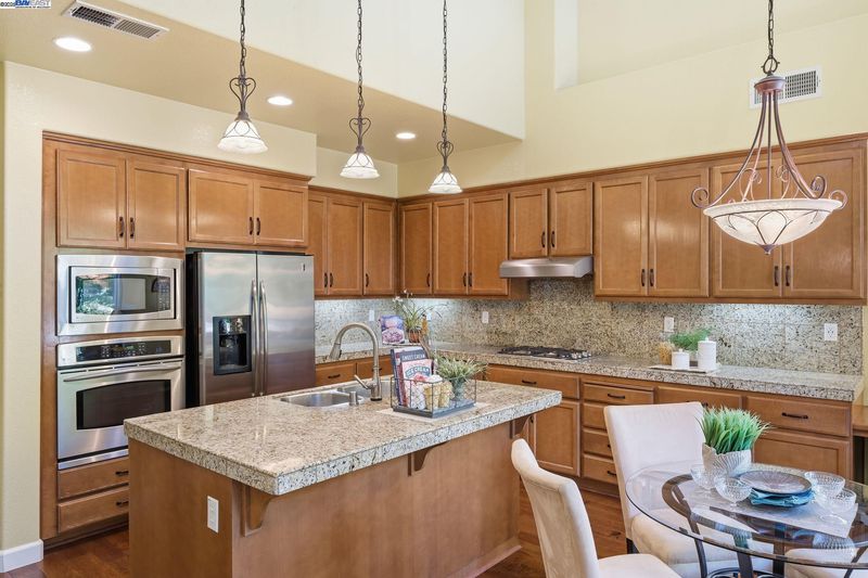 - Dishwasher, Gas Range, Plumbed For Ice Maker, Microwave, Oven, Range, Refrigerator, Dryer, Washer, Gas Water Heater, Breakfast Nook, Stone Counters, Tile Counters, Eat-in Kitchen, Disposal, Gas Range/Cooktop, Ice Maker Hookup, Kitchen Island, Oven Built-in, Range/Oven Built-in