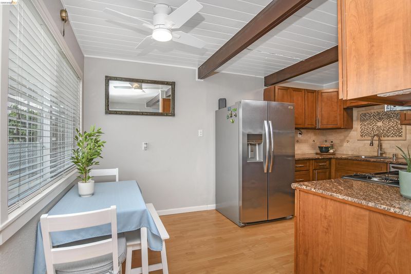 Charming and beautifully updated 2BD/1BA single-story ranch-style home offering 742 sq ft of comfortable living on a generous 5,227 sq ft lot. Step inside to a bright, inviting interior featuring warm wood-style flooring, exposed beam ceilings, and abundant natural light throughout. The updated kitchen showcases granite countertops, stainless steel appliances, and ample cabinetry. The spacious backyard is an entertainer’s dream with multiple seating areas, lush lawn, mature trees, and a custom fire pit—perfect for relaxing or hosting gatherings. Additional highlights include indoor laundry, carport parking, and a private, fully fenced lot. Conveniently located near shopping, dining, parks, and commuter routes. A wonderful opportunity to own a move-in-ready home with exceptional outdoor space!
