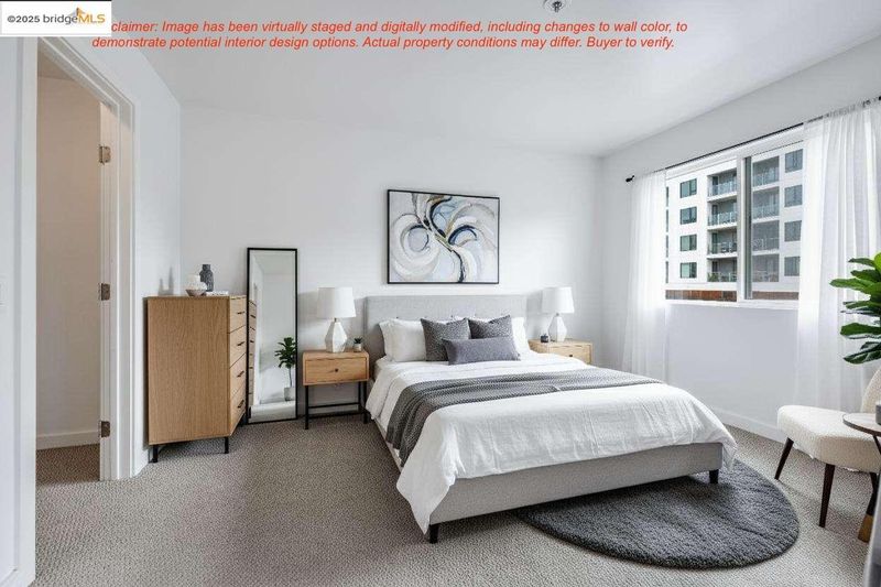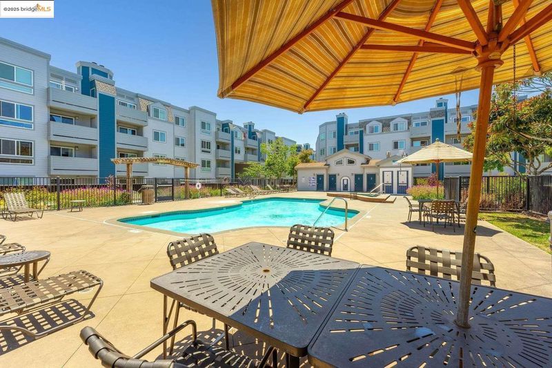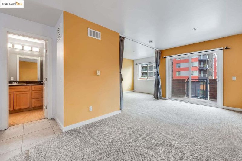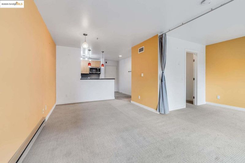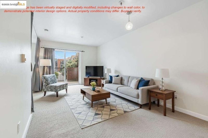This beautifully designed 565 sq. ft. condo in the heart of Emeryville offers modern urban living at its finest. The thoughtfully arranged floor plan begins with a stylish galley kitchen featuring light wood cabinetry, black granite countertops, and stainless steel appliances. Its efficient design maximizes both storage and workspace, ideal for everyday living or entertaining. The open-concept living area provides flexible space for dining and relaxation, enhanced by neutral tones and plush carpeting for a warm, inviting feel. Versatility defines the sleeping area, where curtains offer the option of privacy or open flow, creating a bright and airy atmosphere. A spacious walk-in closet with built-in shelving and generous hanging space ensures exceptional storage solutions. Step outside to your private balcony—perfect for enjoying fresh air—and take advantage of additional storage. There is also one designated parking space in the gated garage. Situated in the vibrant, walkable community of Emeryville, this home places you just moments from trendy cafés, boutique shops, and major transit options. Enjoy an easy commute to San Francisco, UC Berkeley, and Oakland. Resort-style community amenities include EV charging stations, a pool, spa, sauna, fitness center, clubhouse, and more!