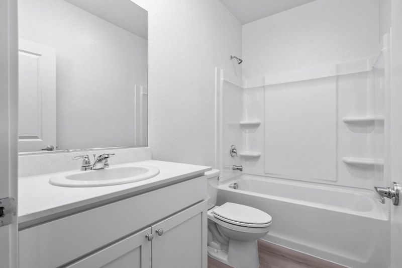 The Avila floor plan presents a thoughtfully designed single-story home that eortlessly combines functionality with style. Featuring three spacious bedrooms, this floorplan is ideal for both comfortable living and entertaining. The open layout enhances the sense of space, with the kitchen seamlessly flowing into the family and dining areas, creating a harmonious and inclusive environment. The kitchen boasts modern stainless-steel appliances and elegant plank flooring, oering both practicality and sophistication. The master bathroom is a luxurious retreat, highlighted by a large vanity and a sleek step-in shower. For added convenience, the secondary bathroom includes a versatile tub/shower combination.