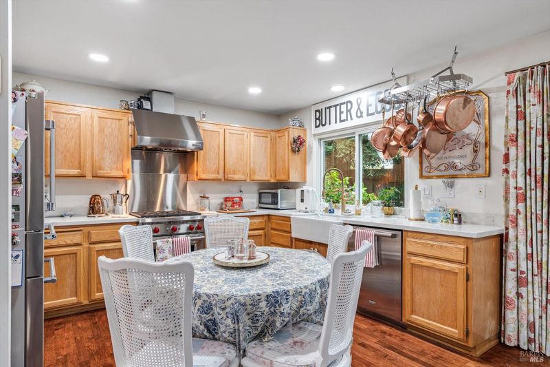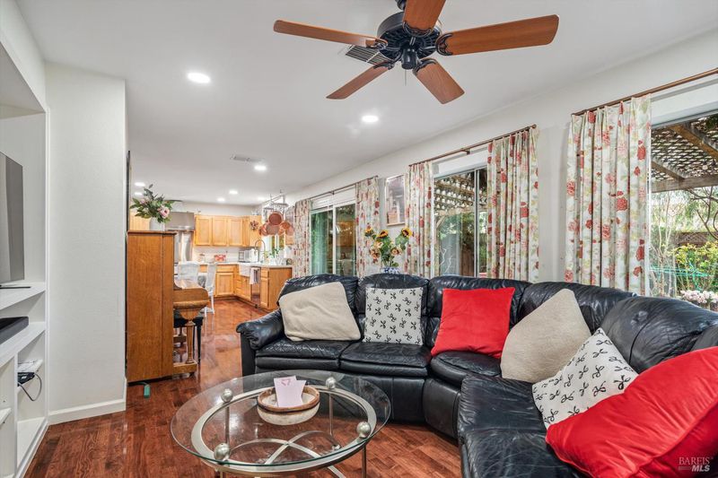 Welcome to this beautifully appointed home in the highly sought after Fryer Creek neighborhood, offering three bedrooms, two and a half bathrooms, and approximately 1,806 square feet of thoughtfully designed living space. From the moment you step inside, you are welcomed by an impressive living and dining area with soaring ceilings that create an open, airy feel, complemented by a striking two-sided staircase that adds architectural character and elegance. The main level features warm wood flooring that flows throughout the home, creating a refined yet inviting atmosphere. The light-filled living spaces transition effortlessly into the cozy family room, where a fireplace provides the perfect setting to unwind while remaining connected to the kitchen and everyday living areas. Upstairs, a versatile loft or office space overlooks the main level, offering the perfect area for a home office, reading retreat, or flex space to fit your lifestyle. The spacious primary suite serves as a private sanctuary, featuring a spa inspired bathroom with a luxurious soaking tub, glass enclosed shower, dual vanities and a generous walk-in closet. The home's light and bright interiors are complemented by tasteful upgrades and attention to detail throughout. Sliding doors open to a beautifully designed backyard that feels like a private retreat. Mature landscaping provides both privacy and tranquility, while the spacious patio offers the ideal setting for entertaining guests, dining outdoors, or simply enjoying Sonoma's incredible weather. Landscaping enhancements create inviting outdoor spaces perfect for barbecuing, relaxing on the wood patio, or enjoying the lush garden surroundings. The property offers a seamless blend of indoor comfort and outdoor living that makes everyday life feel special. Just down the street, the Fryer Creek path offers an easy and scenic connection to the surrounding area, making it simple to enjoy morning walks, bike rides, or a quick trip downtown. Ideally located just minutes from schools, local shopping, acclaimed restaurants, world-renowned wineries and the historic Sonoma Plaza, this home captures the essence of Sonoma Valley living where comfort, convenience and wine country charm come together.