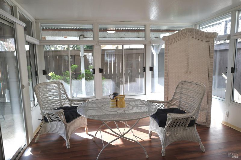 Welcome to comfortable, easy living in this bright 2-bedroom, 2-bath home nestled in Brooks Creek, a quiet 55+ community just a short stroll from shopping, transportation, restaurants and more putting everyday conveniences right at your fingertips! Beginning with a beautiful front porch that adds charm this home has everything you are looking for! Natural light pours in through the large windows and dining room skylight, highlighting the vaulted ceilings and creating an open, airy feel from the moment you walk in. Brand-new carpeting, brand-new cooktop, new roof in 2025. French doors lead to a huge permitted 12 x 13 foot enclosed sunroom! The thoughtful layout offers both privacy and functionality, including a spacious primary suite with its own en-suite bathroom. Step outside to enjoy the covered back patio. The easy to maintain yard includes a lemon tree and garden beds ready for your personal touch. Complete with a one-car garage and set in a peaceful, well-kept community, this home delivers low-maintenance living, thoughtful updates, and an unbeatable location. All with no HOA dues.