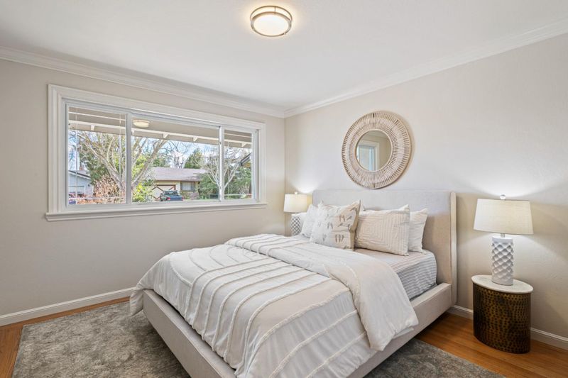 Welcome to this highly sought after Sunnyvale neighborhood! Located on a desirable corner lot and centrally located to Downtown Sunnyvale shopping and dining, Farmers Market, excellent schools, community parks and Apple, LinkedIn and Google. Living Room with cozy fireplace, recessed lighting and hardwood floors, Family Room with picture window overlooks the lush backyard landscape, Kitchen with custom-built kitchen cabinets, granite countertops, built in double ovens, warming drawer, gas cooktop with exhaust hood and dishwasher, Dining area, Primary Bedroom with walk in closet and beautifully updated bath, Updated hall bath, Inside laundry room with ample storage and sink, Beautiful Hardwood flooring, New carpet in bedrooms, Crown molding throughout, Central heating and air conditioning, Transferrable Solar, Private backyard with lush landscape and a vegetable garden area perfect for those with a green thumb and so much more.