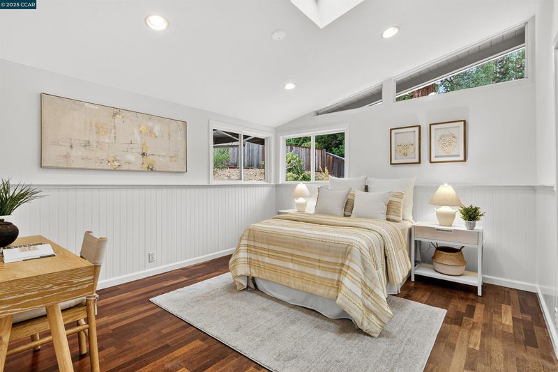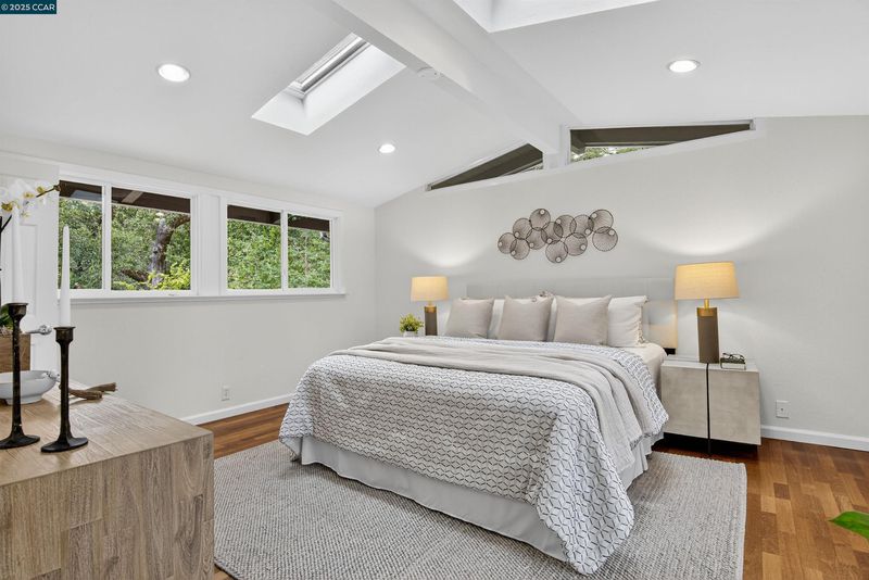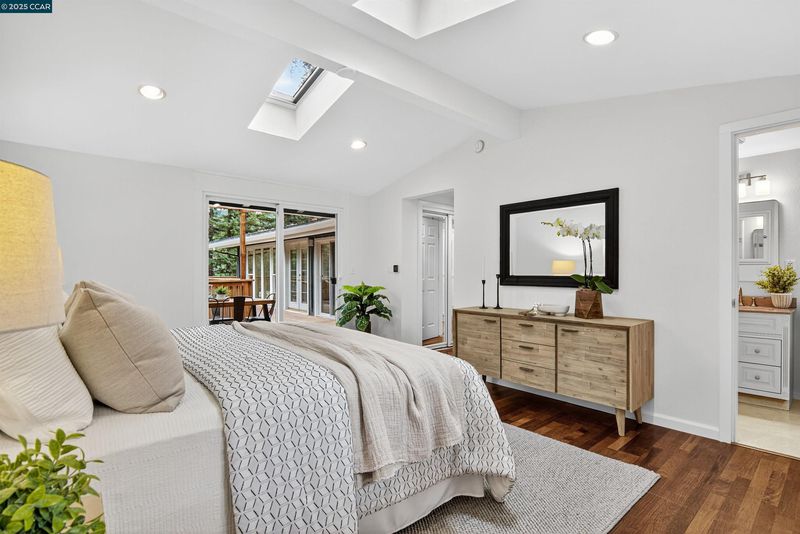 Welcome to 853 Revere Road, a spacious and light-filled retreat ideally set at the end of a quiet cul-de-sac in Lafayette’s sought-after Hidden Valley neighborhood. Just minutes from town, this 5-bedroom, 3-bathroom home offers 2,868 sq ft of mid-century style with soaring vaulted ceilings, walls of windows, and great indoor-outdoor flow. The updated kitchen features a center island, stainless steel appliances, and a smart layout that flows easily into the dining room—complete with direct access to the deck for effortless entertaining. The upper level includes three bedrooms and two bathrooms, including the primary suite. Downstairs, you’ll find two additional bedrooms, a full bath, and a spacious rumpus room that opens to the backyard. Set on a large, private lot, the yard is brimming with possibility—fruit trees, raised vegetable beds, and a standalone sauna offer a unique mix of utility and tranquility. Just minutes to downtown Lafayette and top-rated schools. This is the one. Open Sat10/25 & Sun10/26 1-