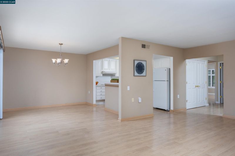 Cheery lower level Sonoma model features 2 bedrooms and 1 bathroom and a generous open balcony. This popular floor plan is an open-concept design that flows seamlessly between the spacious living room, dining room and kitchen. This lovely manor has many upgrades to enhance the warm and homey feel of the property, including a built-in bookcase in living room for additional storage and display opportunities; Pergo flooring; smooth ceilings; paneled doors; plantation shutters in the bedrooms; an updated bathroom with a stall shower; and a stacked washer/dryer unit. GREAT PRICE and a wonderful location in a serene, park-like entry with abundant parking. Close to many of Rossmoor's premier amenities, including the golf course, Event Center, Creekside Grill and clubhouse, and the Dollar clubhouse and swimming pool. Plus, you'll be just moments away from nearby shopping, dining, and entertainment options in downtown Walnut Creek and Lafayette. Enjoy comfort, convenience, and community in northern California’s premier 55+ community. Incredible opportunity to bring your imagination to refresh this inviting co-op and make it your own!