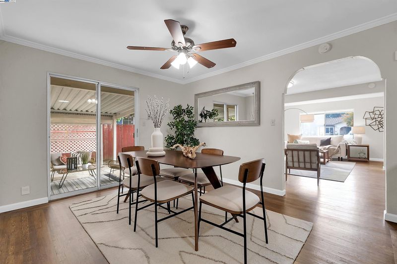 This beautifully updated single-story home offers 1,594 sq. ft. of living space on a 5,000 sq. ft. lot, blending modern comfort with classic charm. Step into the inviting living room featuring refinished hardwood floors and a beautiful fireplace, perfect for cozy evenings. The updated kitchen boasts stone countertops, new stainless steel appliances, stylish cabinetry, and tile flooring, all seamlessly opening to the dining area — ideal for family gatherings and entertaining. This spacious home features four bedrooms and two full bathrooms, providing ample room for family or guests. Enjoy the fresh interior paint throughout, new carpet in select areas, and thoughtful upgrades that make this home move-in ready. Outside, the hardscaped front yard offers great curb appeal, while the backyard features fruit trees, a covered patio perfect for entertaining, and side access with plenty of off-street parking plus a detached garage. Located within walking distance to Logan High School, shopping, and restaurants, this Union City gem offers convenience, comfort, and community — all in one desirable location!