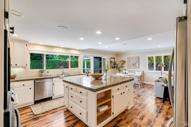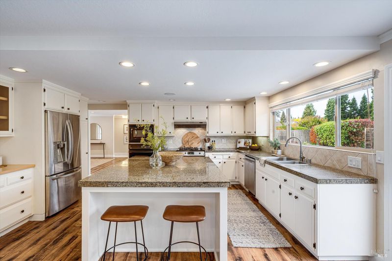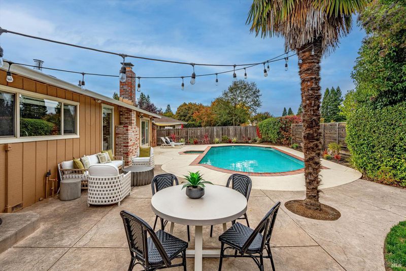 It's rare to find nearly 2,000 square feet of single-level living and this home makes every inch count. The open-concept floorplan strikes the perfect balance between gathering and getaway, with generous spaces for entertaining and inviting nooks for quiet relaxation. A formal dining area flows seamlessly into the living room with a cozy fireplace, while the large kitchen island offers extra seating and casual dining spaceperfect for hosting family and friends. Bedrooms are privately situated on one side of the home, including a serene primary suite that opens to the backyard. Step outside to enjoy true indoor-outdoor living. The beautifully landscaped grounds frame a saltwater pool and spa, cabana bar, and multiple lounging and dining areas, creating the ultimate setting for Wine Country living. Set on one of the larger lots in the neighborhood, the property backs to open space, offering privacy and peaceful hillside views. Formerly a four-bedroom, now a three-bedroom, two-bath home, it has been lovingly cared for, with tiled baths, fresh finishes, and thoughtful updates. Just five minutes from Sonoma Plaza, near parks and trails, this home captures the best of Sonoma livingspacious, welcoming, and perfectly connected to the outdoors.