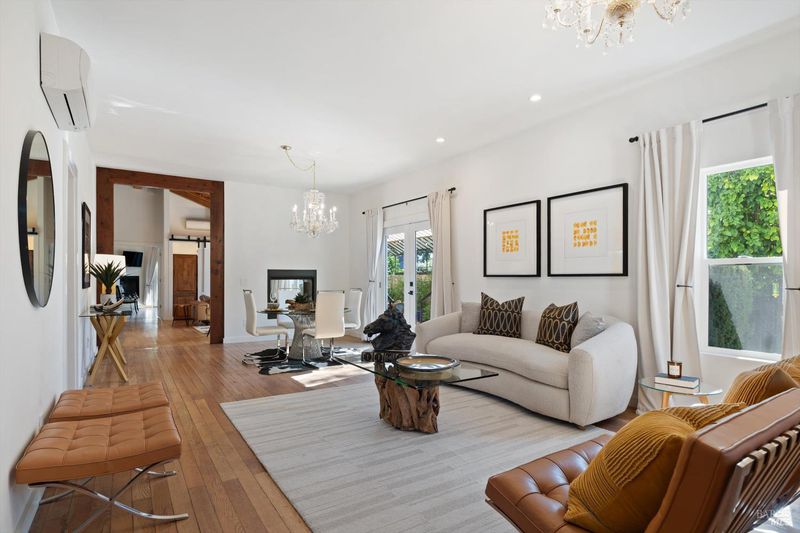 Originally built in 1890 and reimagined beginning in 2021, this Healdsburg home blends historic character with modern luxury. Vintage Douglas fir floors, some reclaimed from a Seattle silo, set the tone for artisan craftsmanship throughout. The kitchen features custom cabinetry, a vintage ILVE stove from Italy, Fisher & Paykel dual-drawer refrigeration, and a large marble island. Comfort details include five-zone mini-split heating & AC, radiant-heated baths, Toto toilets, and steam showers. Outdoors, fruit trees and a 120-year-old olive tree surround a saltwater, solar-heated pool and spa with AquaLink automation. The 550 sq ft pool house/ADU offers radiant-heat floors, a media area, washer/dryer, and European-style bath. The outdoor kitchen, complete with wood-fired pizza oven, barbecue with rotisserie, beverage fridge, ice maker, and sink creates a perfect entertaining hub over an acacia-wood patio. Additional features include new roofs, koi pond, custom planters, and remote gate. Every element reflects thoughtful design and the essence of Sonoma County living.