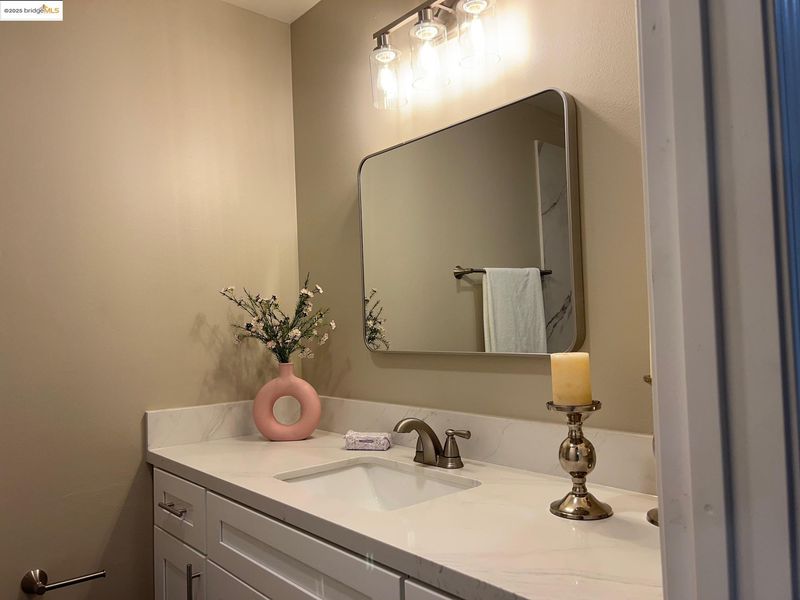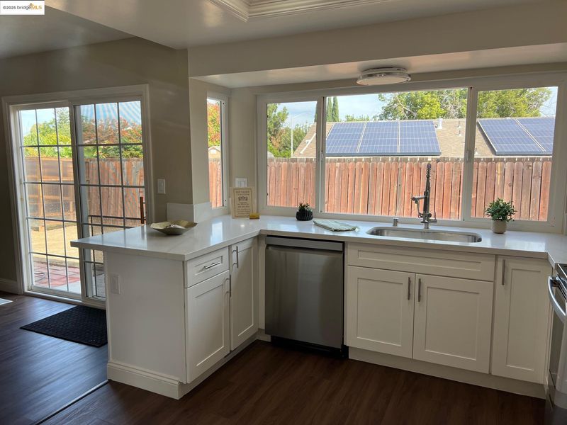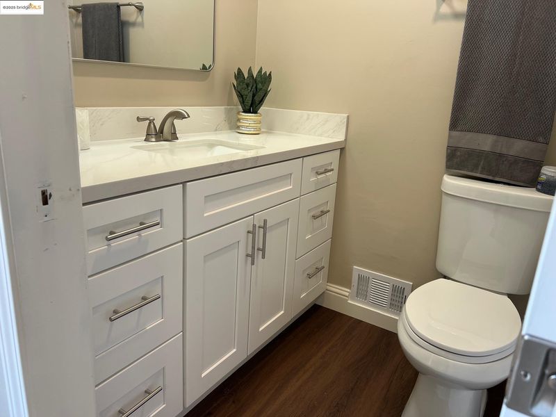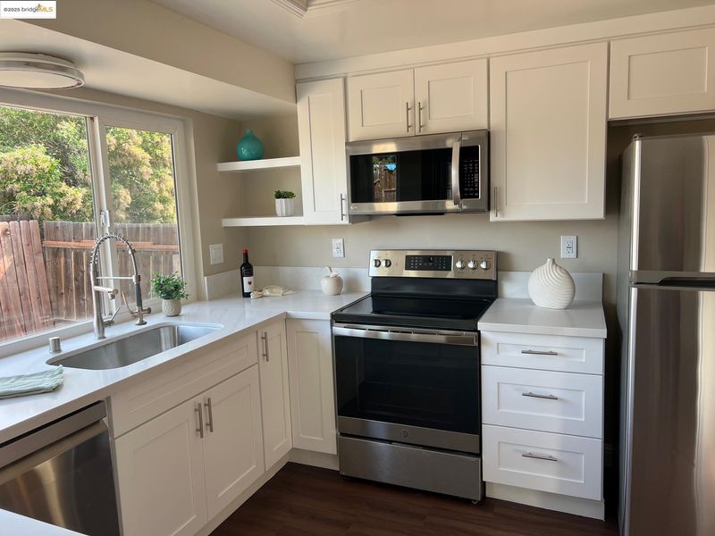 Wow! Nicely updated home with new kitchen cabinets, stone counters, stainless steel appliance, laminate flooring, 5 1/4" baseboards, dual pane windows, new paint. new carpet, 2 panel doors, mirrored closet doors, and ceiling fans. This is a must see. all of this and it is close to freeways and shopping