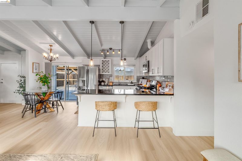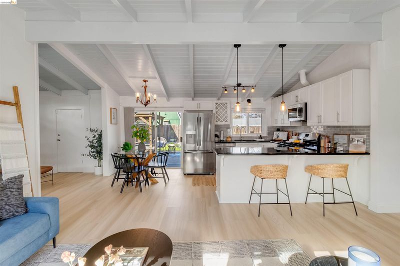 Beautiful single-story home with mid-century charm and an open layout that is truly move-in ready. The updated kitchen offers granite countertops, stainless steel appliances, and a modern look that flows nicely into the main living room. Just off the living room is a bonus area offering an additional approximately 200 sqft, perfect for entertaining, a second sitting area, or a home office, adding flexibility to the layout. The home features new flooring in the main living areas, along with updated bathrooms that add a fresh and modern feel. It also includes central heating and AC for year-round comfort, as well as dual-pane windows that bring in plenty of natural light. Outside, the front and backyard are designed for low-maintenance living. The paved backyard includes a gazebo and artificial turf, creating a great space for outdoor dining, relaxing, or hosting friends and family. In front, the long driveway provides plenty of space for parking and added flexibility. Conveniently located near BART, parks, restaurants, shopping, grocery stores, and with easy freeway access. Come see all that this home has to offer!
