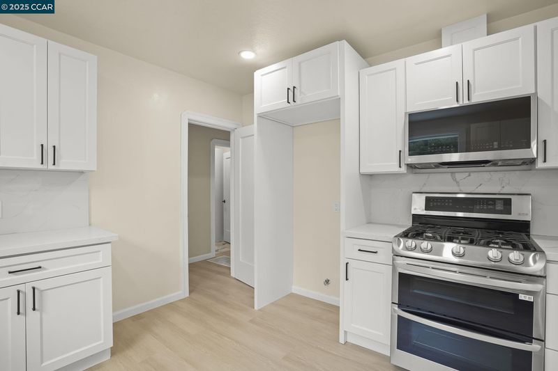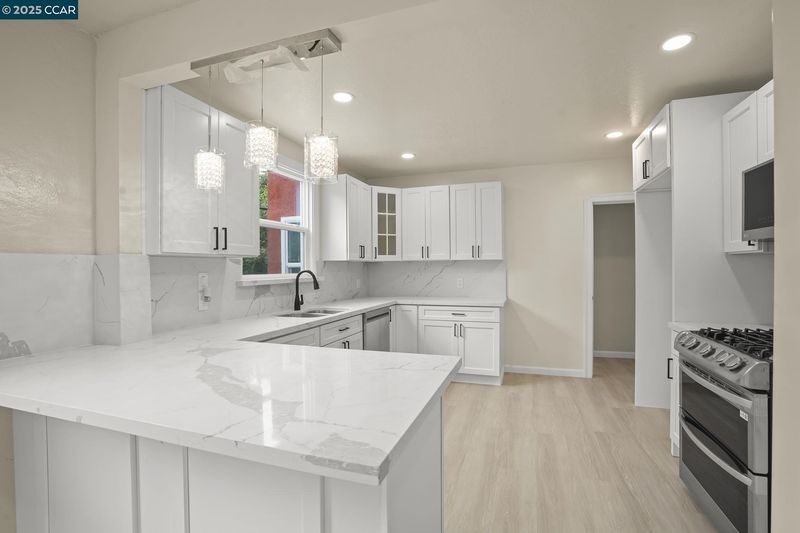 - Microwave, Free-Standing Range, Breakfast Nook, Counter - Solid Surface, Tile Counters, Eat-in Kitchen, Disposal, Range/Oven Free Standing, Updated Kitchen