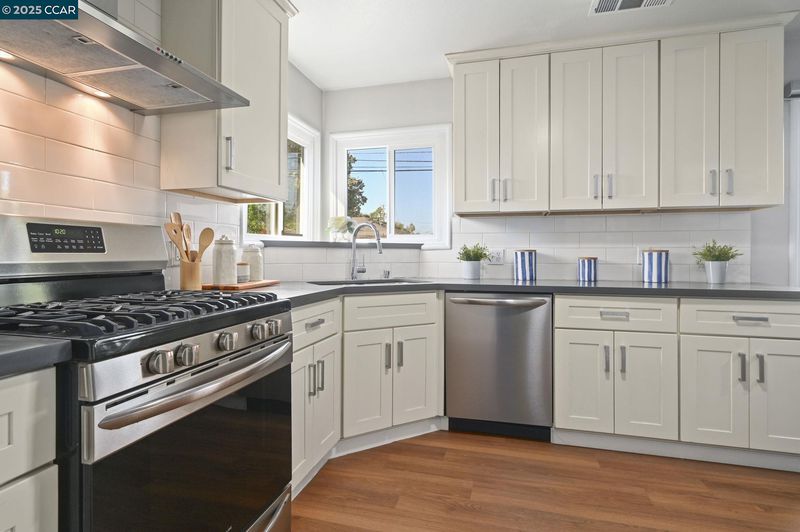 - Dishwasher, Gas Range, Dryer, Washer, Gas Water Heater, Breakfast Nook, Stone Counters, Eat-in Kitchen, Disposal, Gas Range/Cooktop, Updated Kitchen