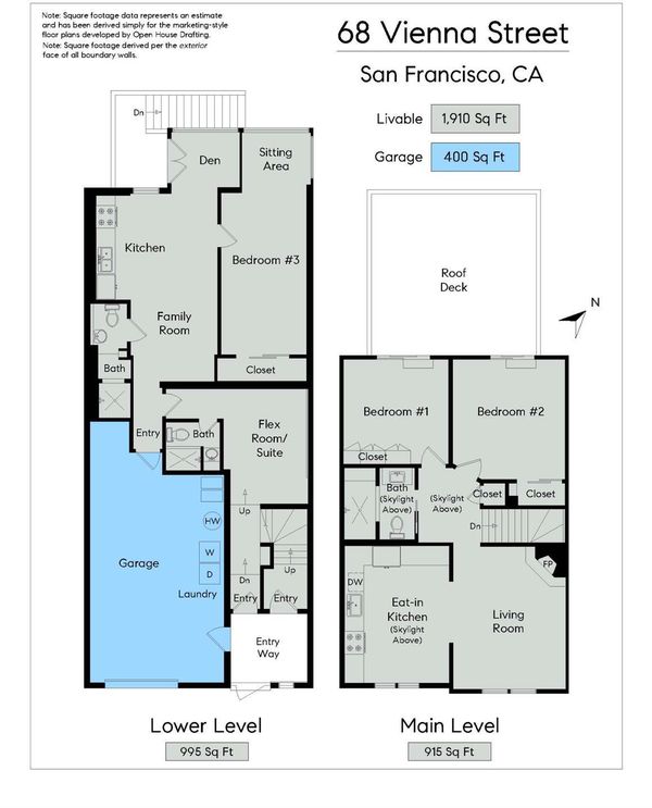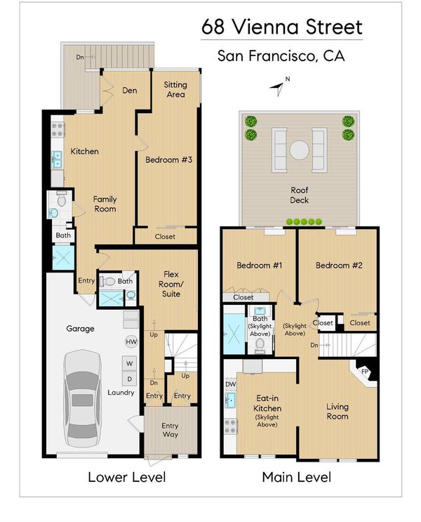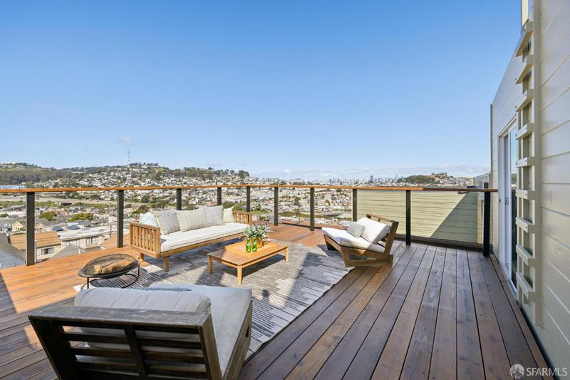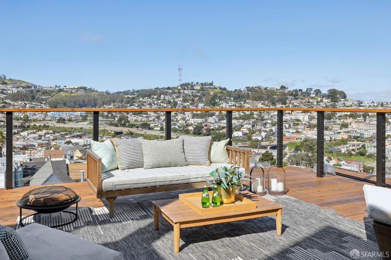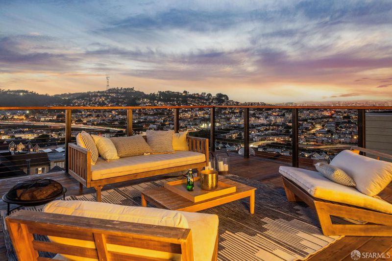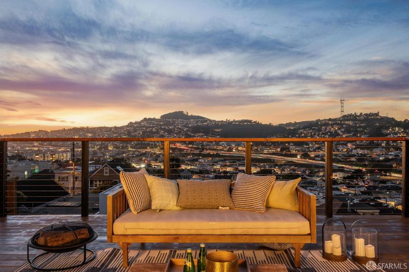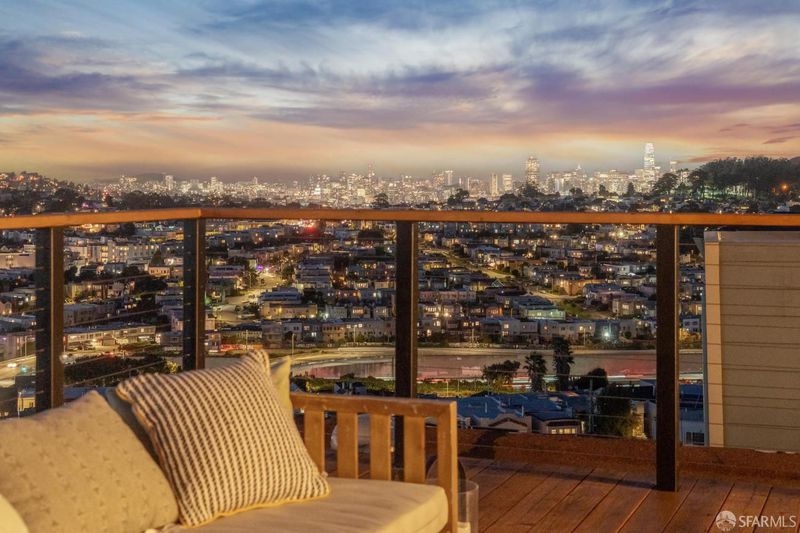 Perched atop Excelsior Hills, this breathtaking panoramic view home showcases sweeping 180-degree views from both levels and the expansive roof deck. With a total of 3 bedrooms, a flex room, and 3 bathrooms, 68 Vienna Street offers exceptional versatility, comfort, and unforgettable scenery. The top floor features a spacious living room alongside a beautifully designed kitchen and dining area, two bedrooms, and one full bathroom. Step out onto the generous roof deck and take in the spectacular sunsets and iconic vistas of the San Francisco skyline, Twin Peaks, surrounding hills and valleys, and the Bay - a truly magical backdrop for everyday living and entertaining. The lower level includes a legal ADU that remains connected to the main living space, providing flexible options for single-family living or a private in-law/guest/teen quarter. This level also enjoys stunning views and opens directly to a deep, level backyard garden perfect for relaxing, gardening, and outdoor gatherings. A large garage with abundant storage completes this exceptional home. Ideally located with convenient access to major freeways, McLaren Park, popular eateries in Bernal Heights, and grocery shopping along Mission Street, this home offers both tranquility and urban convenience. A rare opportunity to own a panoramic view retreat in San Francisco - this is truly a must-see property.