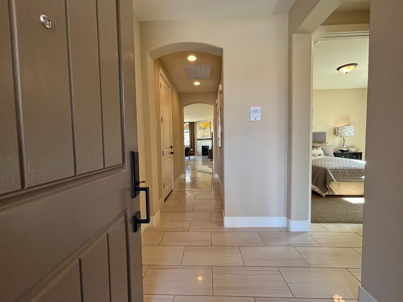 Model Home for Sale! Situated on a spacious lot with impressive three-car-wide driveway appeal. Beautifully designed for comfort and functionality. The center of the home, the gourmet kitchen shines with an oversized island, designer backsplash, and premium upgrades throughout. With its warm finishes and cozy ambiance, its perfectly suited for everyday living and entertaining alike. All appliances are included for added convenience. The serene primary suite offers a spa-inspired retreat with dual vanities, a soaking tub, and a separate shower. Both bathrooms showcase elegant marble vanities, creating a cohesive and elevated look throughout. Additional highlights include upgraded tile flooring in the main living areas, plush upgraded carpet in the bedrooms, and a charming rock fireplace that adds warmth and character. The finished three-car garage is textured and painted for a polished appearance. Enjoy outdoor living with drought-tolerant landscaping in both the front and backyard, providing beautiful, low-maintenance spaces to unwind and entertain. This former model home blends thoughtful design, cozy charm, and modern upgrades ready to welcome you home. Garage is presently being used as a sales office, and will be converted back into a functional garage prior to closing.