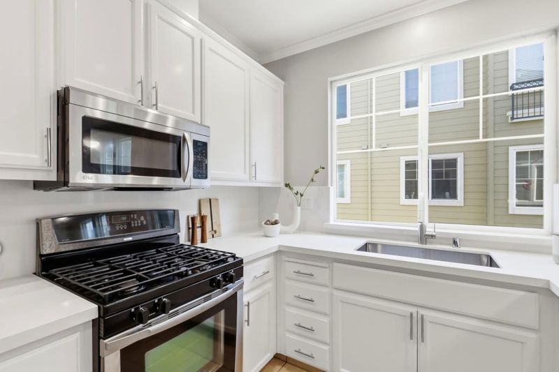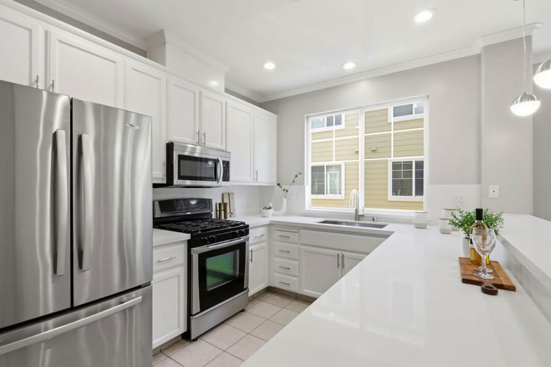 Welcome to a move-in-ready PUD townhome in Sunnyvale - true townhome ownership (not a condo) - bright and thoughtfully laid out for everyday living. This 3-Bedroom plus Office home offers an open main level where the living and dining areas flow into a refreshed kitchen with white cabinetry, stainless steel appliances, quartz countertops, gas cooking, and an oversized walk-in pantry. Enjoy engineered hardwood floor throughout (no carpet), fresh interior paint, central heat & A/C, and LED recessed lighting. Upstairs features three comfortable bedrooms, including a spacious primary suite with a walk-in closet with built-in shelving and a double-sink vanity. A ground-level bonus room is ideal for a home office or gym, plus interior laundry and a side-by-side 2-car garage. A commuters dream, conveniently located near Lawrence Caltrain (Quiet Zone/no-whistle), Lawrence Expressway, and Hwy 101, with quick access to Downtown Sunnyvale, Costco, coffee shops, dining, and major tech campuses including Apple, Google, LinkedIn, and NVIDIA. Good schools (buyer to verify). Low HOA approx. $310/month, includes trash.