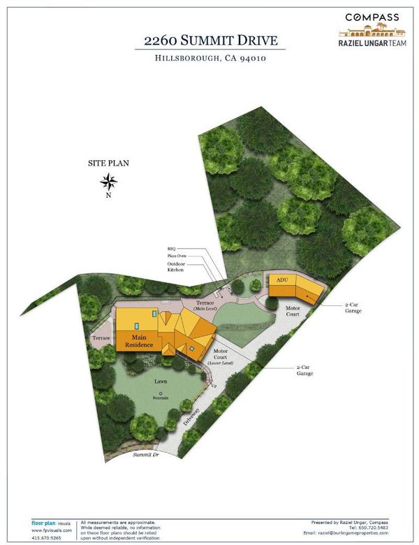 Elevated on nearly one acre of landscaped grounds, this newly updated property offers exceptional scale, flexibility, and presence in a close-in setting. Updates include brand new European white oak engineered floors throughout, newly painted interiors and cabinetry, plus recently remodeled baths and updated HVAC. The foyer opens to a light-filled living room with waterfall view and dramatic two-way fireplace with carved marble surround flanked by built-ins. A generous great room follows, featuring a barrel-vaulted ceiling, expansive wall of glass, formal dining area, and a well-appointed kitchen with granite countertops, large island beneath an operable skylight, premium appliances, and banquette seating. A separate wing has 4 bedrooms and 2.5 baths, including a spacious primary suite with remodeled luxury bath. 3 additional bedrooms include one customized for office use and two with outside access and shared bath. A detached well-appointed ADU with full kitchen, bath, walk-in closet, and private 2-car garage (in addition to the main home 2-car garage) adds outstanding flexibility. Outdoor living includes paver patios, synthetic lawn, and an outdoor kitchen with gas and conventional barbecues. Excellent Hillsborough schools and just over one mile from Broadway shops and dining.