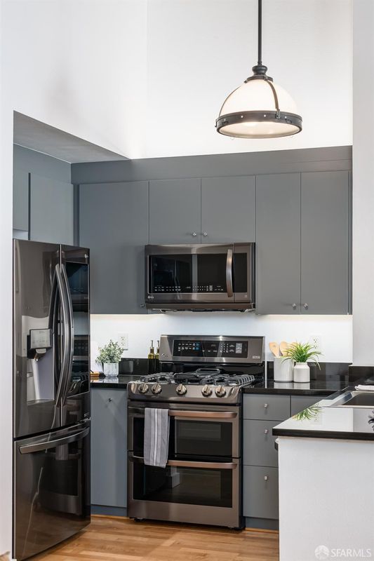 Stunning loft-style residence located in a highly sought-after conversion building. This contemporary single-level home features an open-concept layout that combines the living, dining, & kitchen areas, accentuated by a cozy gas fireplace. Charming touches such as a built-in bookcase w/ a rolling ladder, expansive windows, & exposed concrete. The modern kitchen is equipped w/ LG stainless steel appliances, stainless-steel Kohler sink & semi-professional pull-down kitchen faucet, sleek granite countertops, & newly painted cabinets. Spa-like bathroom, complete w/ a spacious Kohler tub, a newly installed vanity, & sophisticated tile-work. Additional highlights include hardwood floors, a generous walk-in closet featuring an Elfa closet system, & a convenient Samsung washer/dryer. 1 car pkg. Situated within the 200 Brannan community, the HOA offers amenities such as a lobby attendant, elevator, common-area gym & access to a community shared garden courtyard. Prime urban location! Close to the Bay Bridge, MUNI, Caltrain, as well as 101 & 280 Freeways. Close proximity to South Park, Ferry Building, Embarcadero, Oracle Park, Chase Center, Financial District, & Mission Bay.