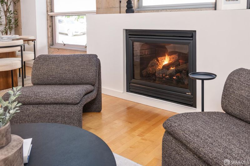 Introducing a stunning loft-style residence located in a highly sought-after conversion building. This contemporary single-level home features an open-concept layout that combines the living, dining, and kitchen areas, accentuated by a cozy gas fireplace. Delight in charming touches such as a built-in bookcase with a rolling ladder, expansive windows, and exposed concrete. The modern kitchen is equipped with LG stainless steel appliances, stainless-steel Kohler sink and semi-professional pull-down kitchen faucet, sleek granite countertops, and newly painted cabinets. Indulge in the spa-like bathroom, complete with a spacious Kohler tub, a newly installed vanity, and sophisticated tilework. Additional highlights include beautiful hardwood floors, a generous walk-in closet featuring an Elfa closet system, and a convenient Samsung washer/dryer. One designated parking space is included. Situated within the 200 Brannan community, the HOA offers amenities such as a lobby attendant, an elevator, common-area gym and access to a community shared garden courtyard. Prime urban location and with connectivity to the Bay Bridge, MUNI, Caltrain, as well as the 101 and 280 Freeways. The location is one of its standout features, with close proximity to vibrant neighborhoods and attractions. South Park offers charming green space and restaurants, while the Ferry Building is famous for its gourmet food options and local farmers' market. Easy access to major venues such as The Embarcadero, Oracle Park and the Chase Center means you can enjoy sports and events without the hassle of long commutes. The ability to reach the Financial District, Mission Bay, and Jackson Square quickly makes this a commuter's paradise. Overall, this residence is not just a home; it's a lifestyle choice that blends luxury, convenience, and community in a prime urban setting.
