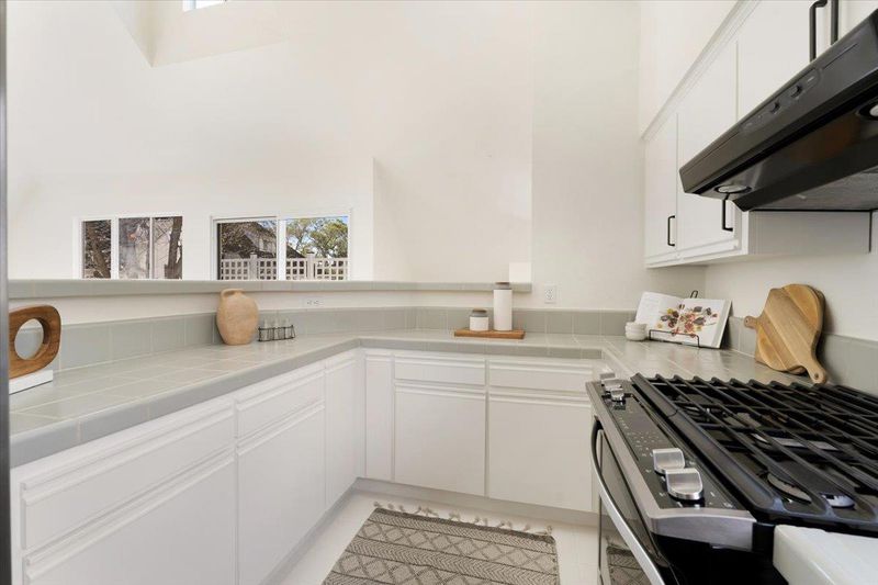 - Countertop - Tile, Dishwasher, Garbage Disposal, Hood Over Range, Oven Range - Gas, Refrigerator, Skylight