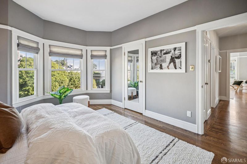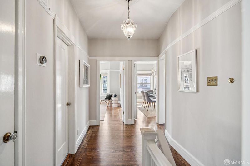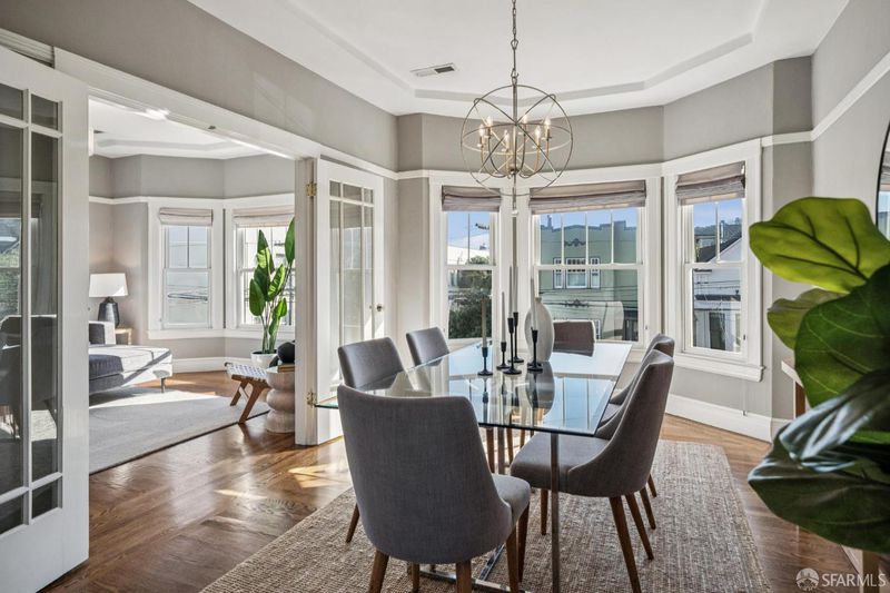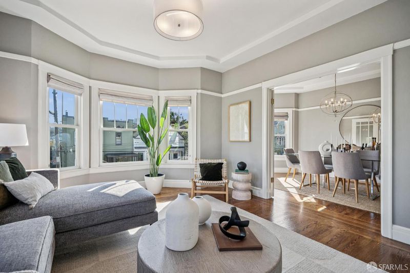 Bathed in natural light, this south-facing top-floor Edwardian condo perfectly blends timeless charm with modern comforts. Located on the coveted corner of the building, the home enjoys sunlight throughout the day. The flexible floor plan offers a large one-bedroom layout with a living room that can also serve as a second bedroom or office. Features include an updated kitchen and bath, top of the line appliances and in unit laundry. Rare two car side-by-side parking each with its own garage door, plus private storage and a shared landscaped yard complete this exceptional home. Located in one of San Francisco's most desirable neighborhoods, just moments from vibrant shops, cafes, and parks, this home captures the best of classic architecture and contemporary living.