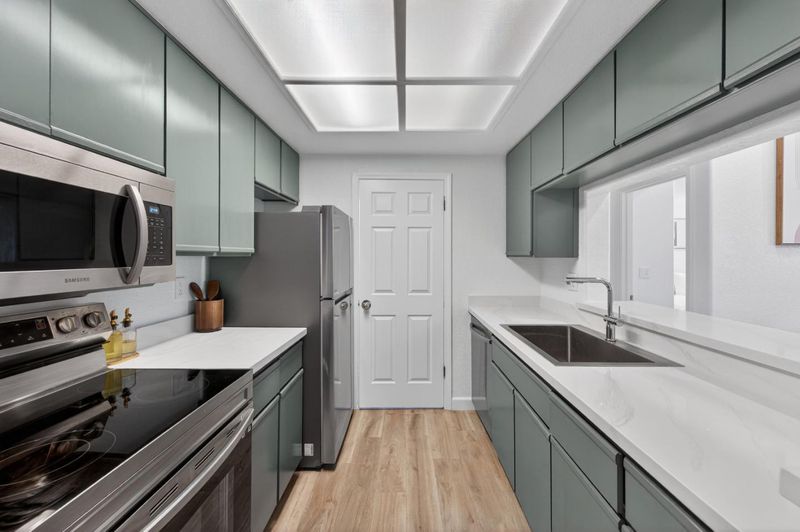 - Cooktop - Electric, Countertop - Quartz, Dishwasher, Garbage Disposal, Microwave, Oven Range, Refrigerator