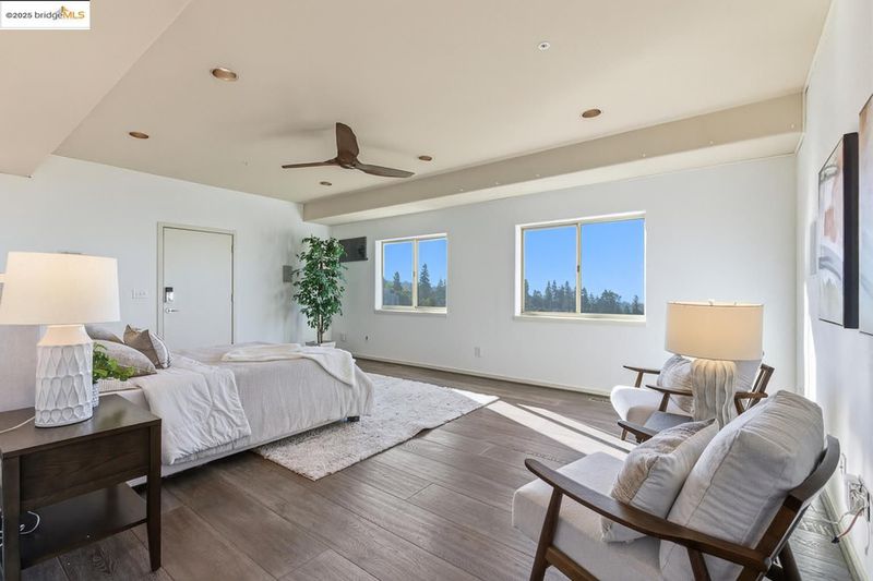 Perched at the end of a quiet level cul-de-sac, views encompassing all 5 bridges, San Francisco, & even the Farallon Islands. Originally envisioned as a high-end Mediterranean estate, the home has been thoughtfully updated to fuse timeless architectural warmth w/crisp contemporary sophistication. The result is a residence that feels both enduring and current—an effortless blend of design, comfort, & innovation. 4+ Bedrooms | 3.5 Baths | Chef’s Kitchen Dramatic entryway sets a grand tone from the moment you arrive. Chef’s kitchen w/Silestone quartz countertops, custom cabs, modern plumbing & lighting fixtures, & stainless appliances designed for entertaining, w/a fluid connection to both formal & informal open living spaces. Appliances include a Sub-Zero refrigerator/freezer, Miele oven & exhaust, & a Lutron remote-controlled shutter system in the kitchen. Lavish primary suite featuring a private sauna, spa-style bath, & unparalleled views stretching to the horizon. Expansive level backyard—ideal for croquet, badminton, gardening, or simply relaxation. Expansive deck clad in Brazil Ipe wood, offering an outdoor living experience. Eco-upgrades: an 8 kW+ solar array paired w/2 Tesla Powerwalls for energy independence. Views, level outdoor spaces, &high-end finishes can all be yours.
