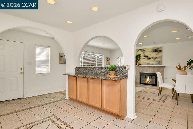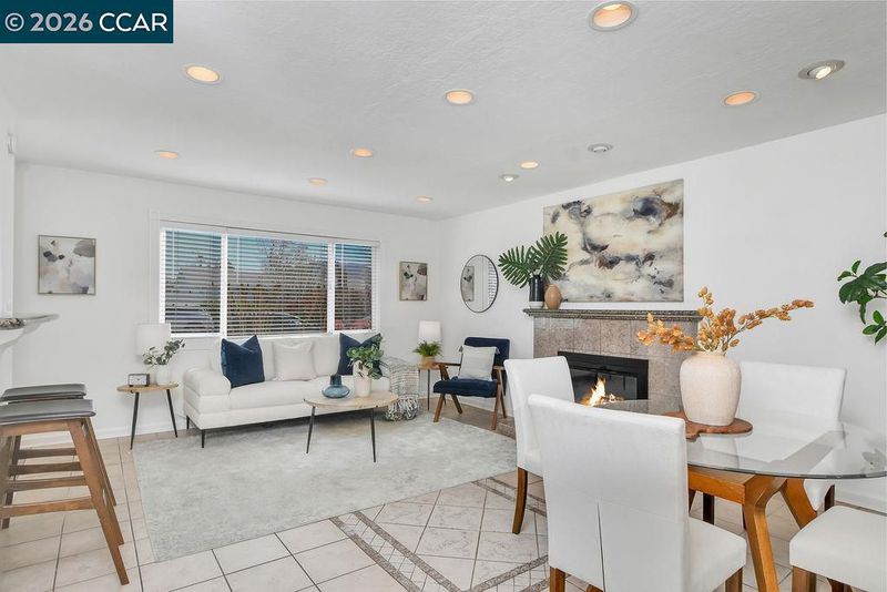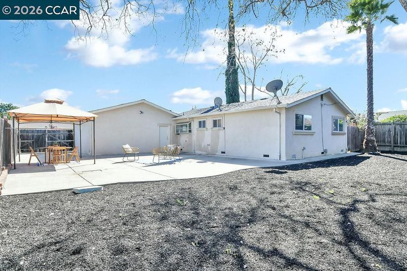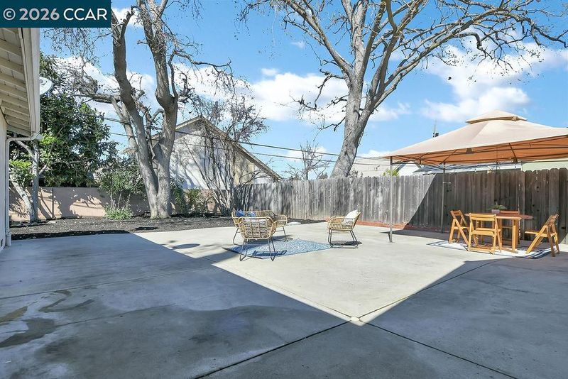 Adorable 1 story home offering a fantastic floor plan with modern appeal. Arched openings connect the kitchen and living area creating a comfortable open-concept layout. You’ll love the spacious kitchen featuring granite countertops, gas stove, built-in microwave and a convenient dining bar. The spacious living area showcases an inviting fireplace with granite tile surround and granite mantle, along with a large window that frames beautiful views of Mount Diablo. Additional features include central heat and air, dual pane windows, recessed lighting throughout, fresh interior paint, raised panel doors, new hall vanity, light and mirror, nicely updated tiled shower and other thoughtful updates throughout. The beautifully landscaped front yard provides great curb appeal. Generous backyard offers an expansive patio perfect for entertaining with multiple seating areas. Beyond the patio, the large backyard offers a blank canvas ready for your dream landscape design. Just blocks from Newhall Park and miles of trails