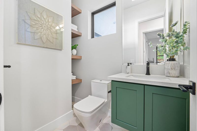 Luxury new construction tucked privately at the rear of Luxe Oak Community, a four-home enclave in Mountain Views Cuesta Park area. This home feature 2,695 sqft, 5 bedrooms, and 4.5 baths across two levels with a flexible, modern layout. Main level includes 2 bedrooms and 2.5 full bathsideal for guests or multigenerational living. Upstairs features 3 additional bedrooms and 2 full baths, including a stunning primary suite with a reading nook and spa-like bath: floating vanities, freestanding tub, and large walk-in shower. Gourmet kitchen includes custom cabinetry, quartz countertops, top-of-line appliances, and a large island. Open concept flows into the dining area and great room with an electric fireplace and wide glass sliders opening to the covered patio. 10' ceilings, recessed lighting, and modern finishes throughout. Close to parks, top-rated schools (Bubb/Graham/MVHS), Downtown MV, Caltrain, and major tech employers. A rare opportunity to own new construction in one of Mountain Views most loved neighborhoods.