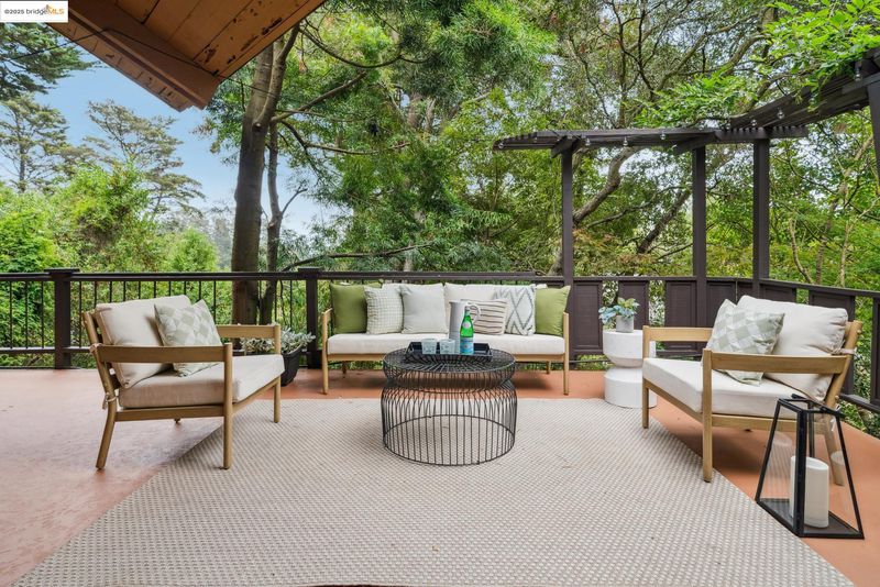 Piedmont Pines Mid Century Retreat. Nestled among the trees, this serene mid-century home offers the feeling of a Tahoe getaway just minutes from Montclair Village. The main house features 4+ bedrooms, 2 bathrooms, two spacious living rooms, and flexible spaces ideal for a media room, office, or gym. An additional 1-bedroom, 1-bath suite with a private entrance is perfect for guests or an au pair. Designed for effortless indoor/outdoor living, the home opens to expansive private decks leading to a tranquil pond and level play area, hot tub and surrounded by gardens with a Japanese-inspired design. Enjoy glimpses of the Bay, a fully remodeled kitchen, and an open floor plan with warm wood finishes, a wet bar, and sliding glass doors framing lush greenery. Conveniently located near Hwy 13 and scenic hiking and biking trails, this one-of-a-kind property offers privacy, beauty, and a true connection to nature—just moments from city life. Close to top rated schools, East Bay Parks and much more!