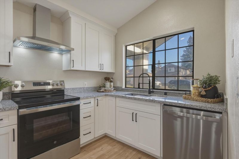 Beautiful updated 3bd,2bath, Cathedral ceilings, New Roof, brand new kitchen, with ss new appliances, updated bathrooms, low maintenance yard, close to shopping, schools and Freeways.
