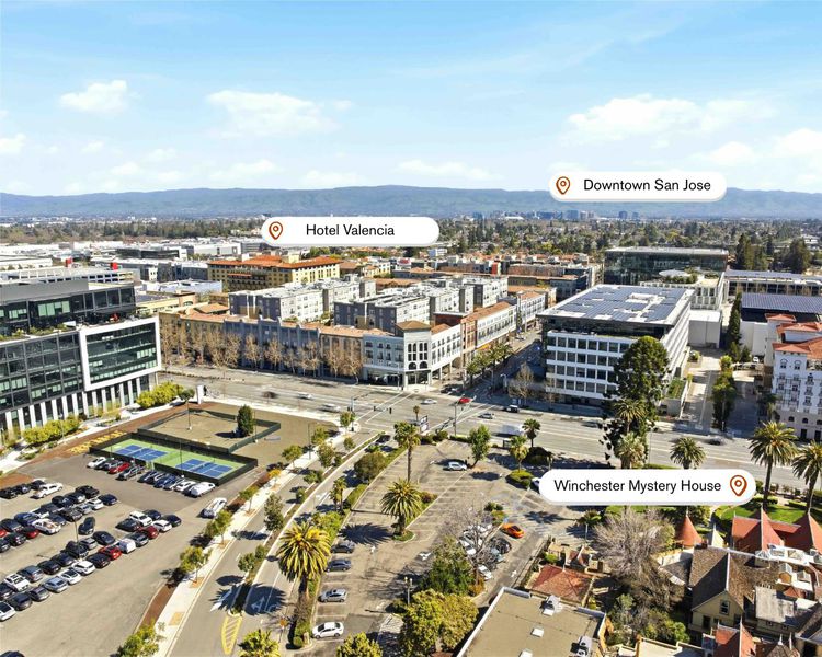 Live the Santana Row luxury lifestyle in this rare corner residence with no shared walls, the only floor plan like it in the building. Designed for comfort and privacy, the home features unobstructed views, incredible natural light, and premium upgrades including KitchenAid appliances, Samsung Bespoke refrigerator, Moen fixtures, and luxury vinyl plank flooring throughout. Enjoy individually controlled heating and AC for personalized comfort. The location is unbeatable, just 4 minutes to Santana West, 6 minutes to Santana Row, and 15 minutes to Valley Fair, offering walkable access to top restaurants, nightlife, fitness studios, and shopping. Located across from a beautiful city park with green space, playground, basketball court, and dog park, the home blends vibrant city living with a quiet neighborhood feel. Amenities include rooftop deck with grills, elevator access, bike storage, prime parking, solar panels; this community has so much to offer!