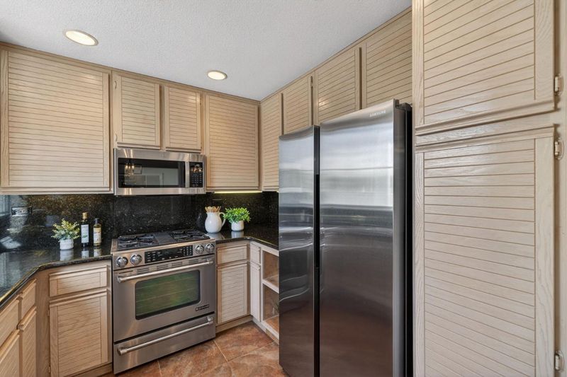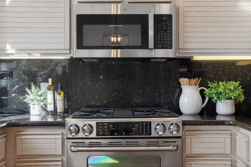 - Cooktop - Gas, Countertop - Granite, Dishwasher, Exhaust Fan, Garbage Disposal, Microwave, Oven Range, Refrigerator
