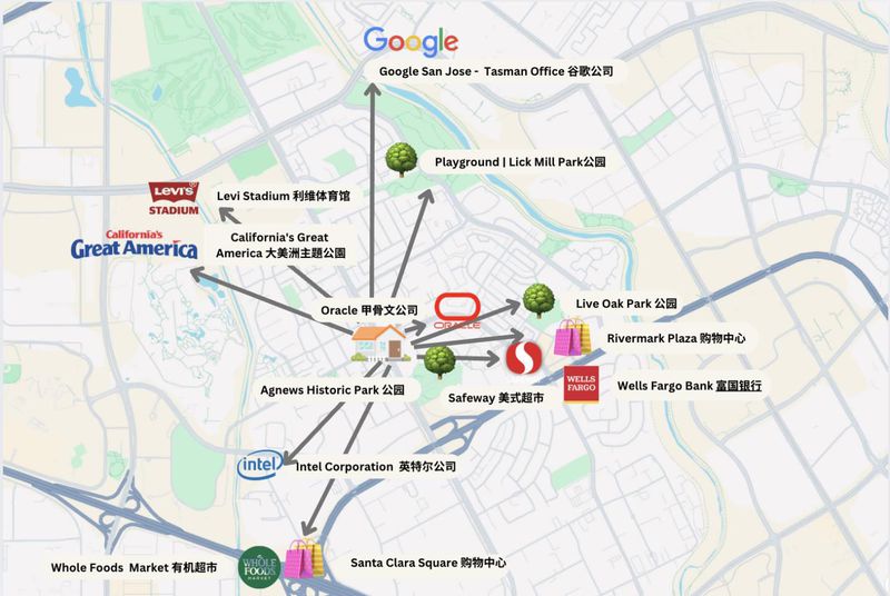 This bright and spacious corner unit, conveniently located close to the elevator in a secure complex, is a rare find! The well-appointed kitchen features granite countertops, a breakfast bar, all stainless steel appliances, and plentiful cabinetry. It opens directly onto a large, light-filled living/dining area and an oversized covered patioperfect for al fresco dining and entertaining guests. Three generous bedrooms include a private master suite with two large closets and an adjoining spastyle bath, plus a full guest bath and in-unit laundry. Residents enjoy access to a sparkling community pool, fitness center, and childrens play area. Two reserved side-by-side parking spaces are located in the underground garage. Ideally situated, its a short trip to Rivermark Plaza shopping and Don Callejon School, and just steps to the peaceful Guadalupe River Trail. Oracle is right across the street, Levis Stadium is a short walk away, and commuting to high-tech employers is a breeze!