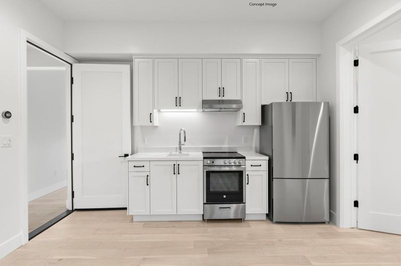 - Countertop - Quartz, Dishwasher, Exhaust Fan, Freezer, Garbage Disposal, Hood Over Range, Island with Sink, Microwave, Oven Range - Electric, Pantry, Refrigerator