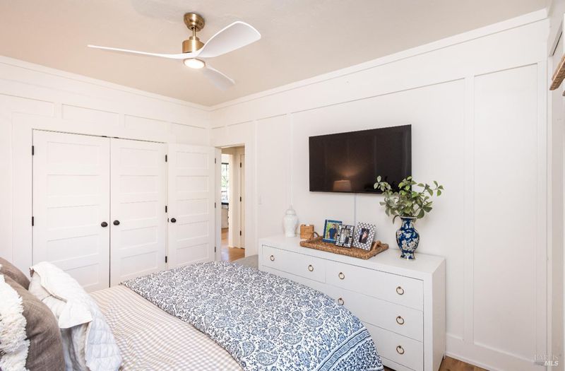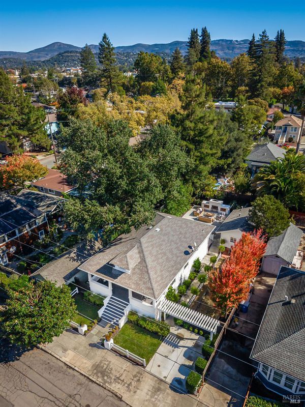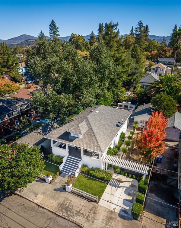Experience the next level of downtown Napa living, Where Classic Architecture and Contemporary Living Converge - 576 Patchett Street where timeless Colonial Revival architecture meets inspired contemporary living in the heart of Napa. This thoughtfully curated single-level 2-bedroom, 1-bath residence offers a seamless blend of classic charm and modern design. An inviting elevated front porch with west-facing swings sets the tone for relaxed evenings. Inside, the chef's kitchen dazzles with a center island, gas range, stainless steel appliances, and walk-in pantryflowing effortlessly into a sun-drenched great room with views of the lush backyard. A cleverly integrated office and wide-plank wood floors enhance the home's functionality and style. Step outside to a beautifully landscaped patio with a gathering table and bocce courtperfect for entertaining or peaceful retreat. A cozy fireplace with hearth anchors the living space, radiating warmth and connection. With a workshop, generous basement, and a coveted location near Fuller Park and Downtown Napa's vibrant scene, this home is a rare blend of elegance, comfort, and lifestyle.