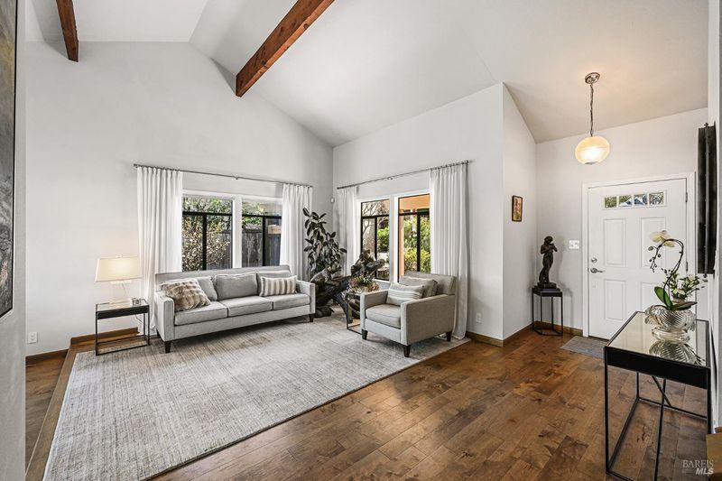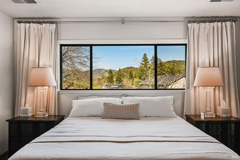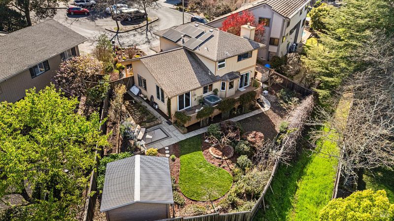 Tucked away on a quiet cul-de-sac in one of Bennett Valley's most desirable neighborhoods, this beautifully remodeled home blends comfort, style, and a deep connection to nature. With 3 bedrooms, 2.5 bathrooms, and a charming detached studio, it's thoughtfully designed for comfortable everyday living. The home welcomes you with the warmth of solid maple flooring, vaulted ceilings, and abundant natural light. The remodeled kitchen, featuring quartz countertops and modern finishes, flows seamlessly into the open living and dining spaces, creating an inviting setting for everyday living or entertaining. Updated bathrooms offer clean, contemporary design, while the detached studio provides a versatile space well suited for a home office, art studio, fitness area, or creative retreat. Outside, unwind on the spacious deck with a hot tub, take in peaceful hillside views, or enjoy the quiet sounds of nature that make this property feel like a private retreat. An owned solar energy system and EV-ready setup make this home as efficient as it is beautiful. Just around the corner, access the Veterans Memorial Trail, connecting you to Trione-Annadel State Park and Spring Lake Regional Park...two of Sonoma County's most popular outdoor destinations. You're also just minutes from Bennett Valley Golf Course, local shops, and Howarth Park, a local favorite for fun and recreation. With its modern updates, energy-efficient features, and serene setting, this Bennett Valley home is a rare blend of style, comfort, and a true connection to nature.