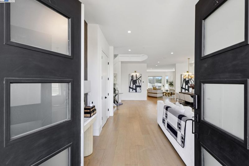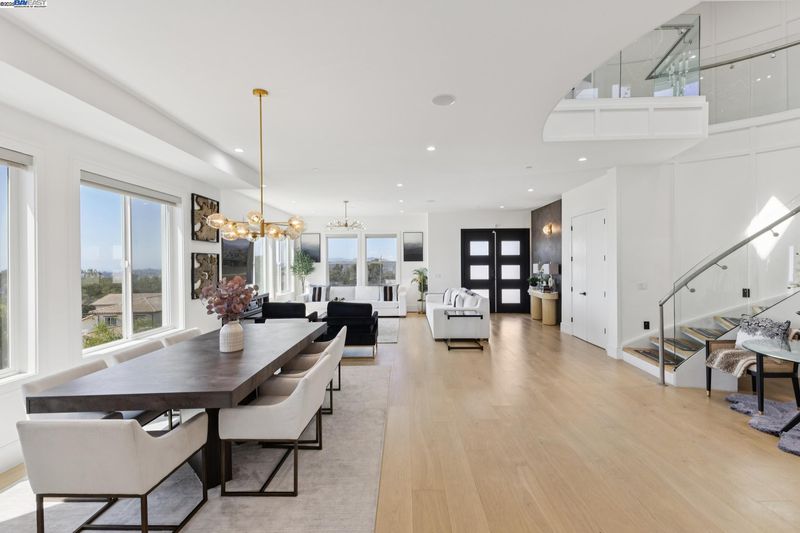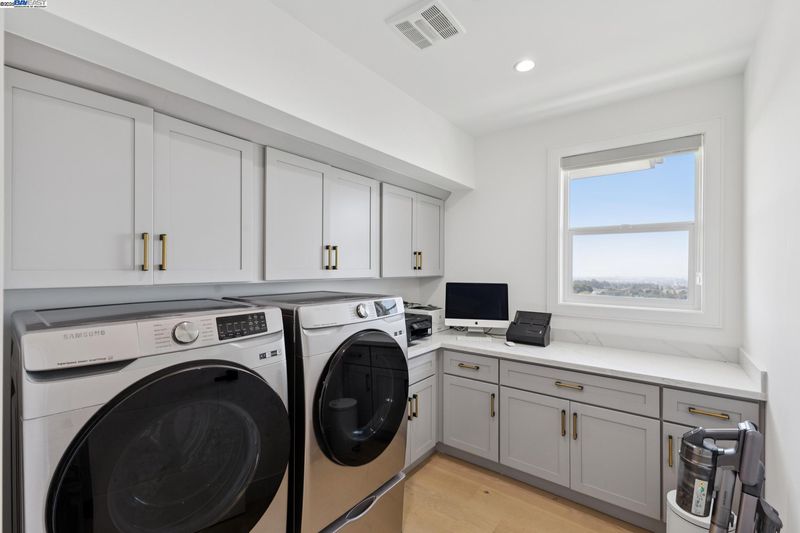 Stunning custom-built home in an exclusive gated community in the Fairview District with breathtaking Bay and SF skyline views. This 4-bedroom, 4-bathroom residence offers luxurious living with all ensuite bedrooms featuring walk-in closets. Step through the grand double doors into a soaring entry with a circular glass staircase and a custom chandelier. The open-concept layout features rich hardwood floors throughout, two full kitchens, including a prep kitchen, and two laundry rooms one on each level for added convenience. The main kitchen features premium appliances, quartz countertops, and modern finishes. Multiple view decks and large windows showcase panoramic vistas. The primary suite offers a spa-like bath with a soaking tub, walk-in shower, dual vanity, and custom tilework. Additional highlights include a paid-off solar system, EV charger, whole-house ventilation system, and beautifully landscaped outdoor spaces. A rare opportunity to own a showstopping home with privacy, functionality, and views in the Bay Area.