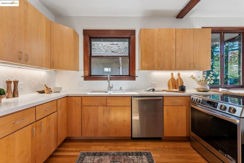 Welcome to this stunning Craftsman-level home in the heart of Rockridge. With 3 bedrooms and 1 bathroom across 1,280 sq ft of thoughtfully maintained living space, this home exudes timeless charm and pride of ownership—a perfect harmony of modern living and authentic Craftsman detail. Inside, you’ll find oak floors with walnut inlay, a box-beam ceiling, original built-ins, and a striking stone fireplace—all complemented by recessed lighting and exquisite Hansen Custom wood windows. The kitchen features stainless steel appliances, and there is an Eero mesh Wi-Fi system, which extends WiFi to every room for seamless connectivity. Upgrades include a 200-amp electrical panel, new wiring throughout, updated plumbing, and refreshed landscaping—just a few of the many improvements made over the years. Sewer lateral compliant and move-in ready, the home also offers a back deck overlooking a lush, sun-filled backyard—perfect for relaxing or entertaining. A spacious, full basement provides ample storage and offers potential for future expansion. Enjoy walkability to College Avenue’s shops and restaurants, easy highway access, and a quick hop to Rockridge BART. This home blends location, lifestyle, and craftsmanship—truly a special place to call home.