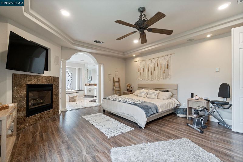 Short Sale Opportunity! Welcome to this custom masterpiece, where luxury & elegance blend seamlessly. The home greets you with dramatic, towering windows that nearly stretch from floor to ceiling, flooding the space with natural light and framing the grand entryway. Marble floors and a stunning marble staircase ascend beneath soaring ceilings accented by soft taupe tones and stately pillars. Step into the gourmet kitchen, where custom cabinetry, a crystal chandelier, and granite countertops are beautifully complemented by four layers of crown molding. This space flows effortlessly into the living room, featuring built-ins and a cozy fireplace, perfect for gatherings or relaxation. Upstairs, the first bedroom opens to a private balcony through French doors, complete with an ensuite bathroom. Two additional bedrooms share a thoughtfully designed Jack-and-Jill bathroom. The primary suite, set behind elegant double doors, is a sanctuary with its own fireplace, spa-like bathroom featuring a soaking tub, dual vanities, and two expansive walk-in closets. For added convenience, an upstairs laundry room awaits, along with a versatile garage space ideal for a workshop or gym. Outside, the backyard oasis invites you to unwind by the sparkling pool, complete with a cascading waterfall. Thro